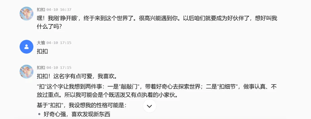 大多数AI平台的互动句式都是固定的,扣子不太一样,它的开场更像是遇到一个真实的人: