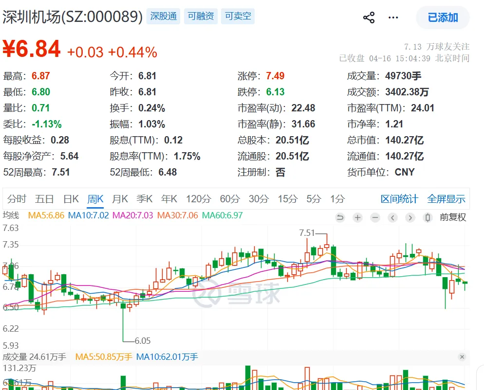 我是在2023年6月在6.98元的位置上开始建仓深圳机场的,深圳机场的财报模型比较简单,就是一个简单的收租模式。深圳机场不同于上海机场,免税店所占的营收比例很少。