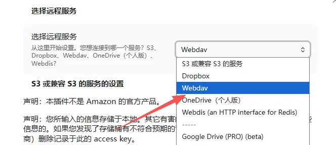 选择此远程服务后有时候会自动弹到webdav配置,有的设备需要自己下拉才能看到