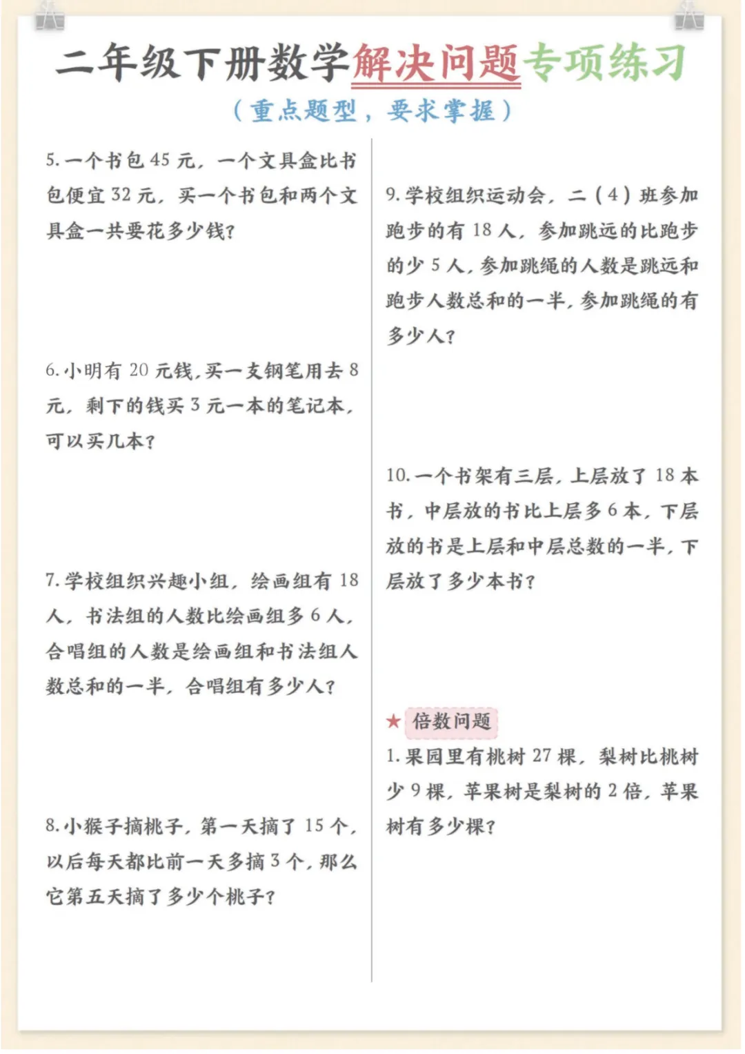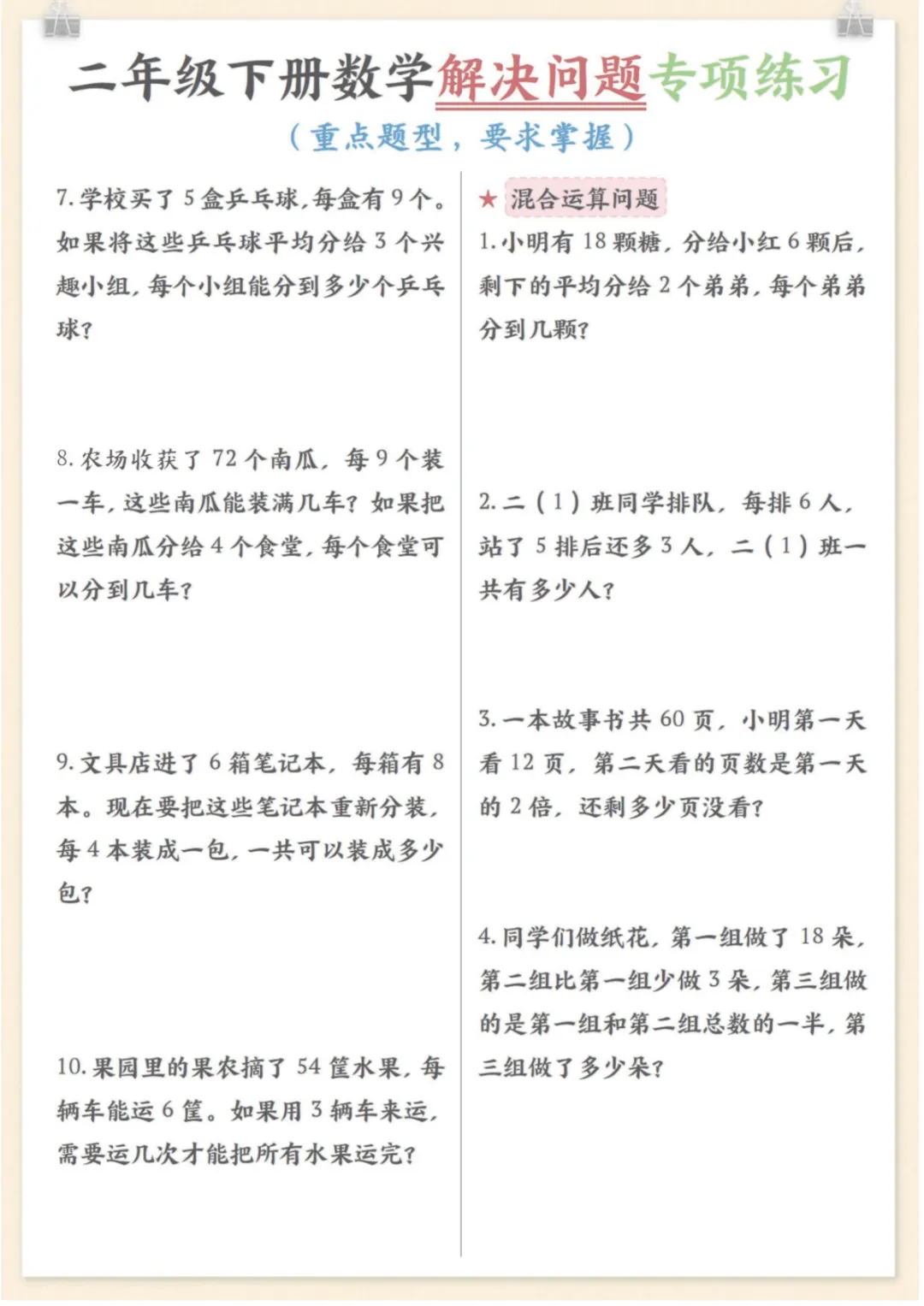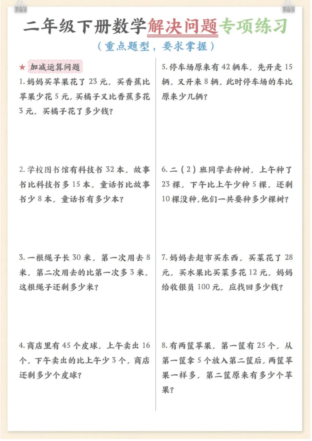 二年级下数学解决问题专项练习,电子版可打印 None (温馨提示:文末有完整领取方式) 免费领取完整电子版 ①:点一点右下角的“赞”和“在看”,感谢!②:在公众号对话框中回复: 7128 ③: 点击小程序领取→电子版资料