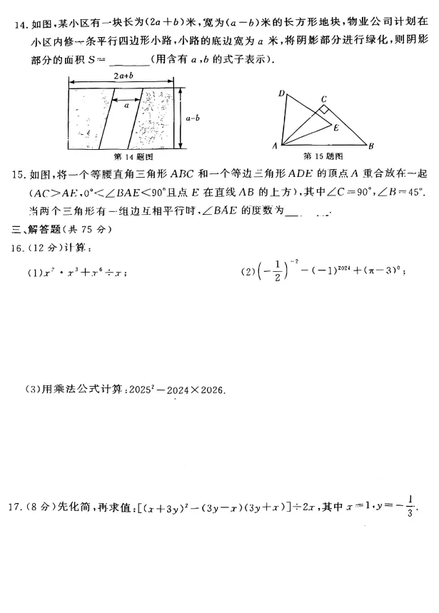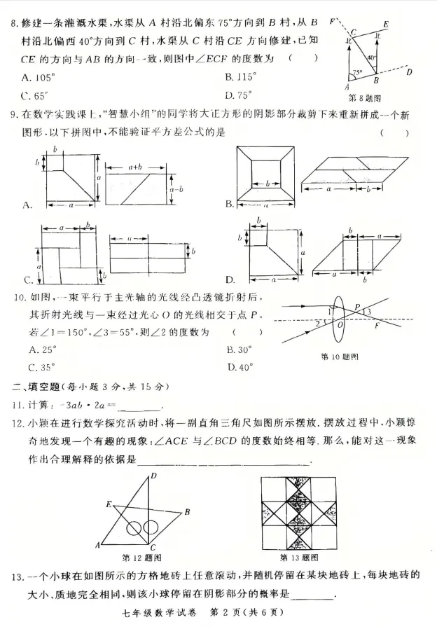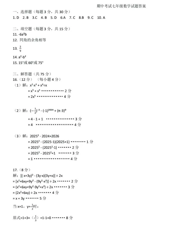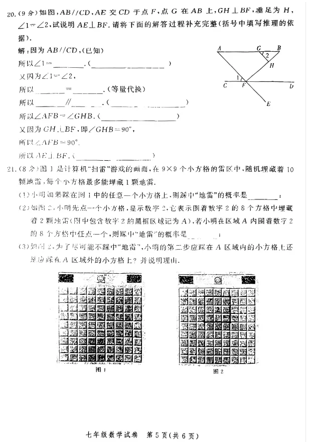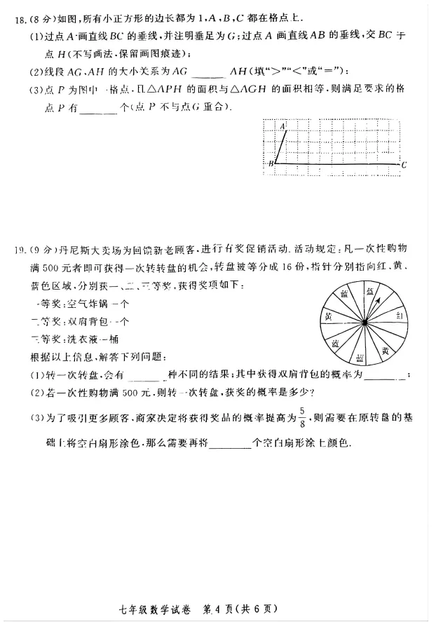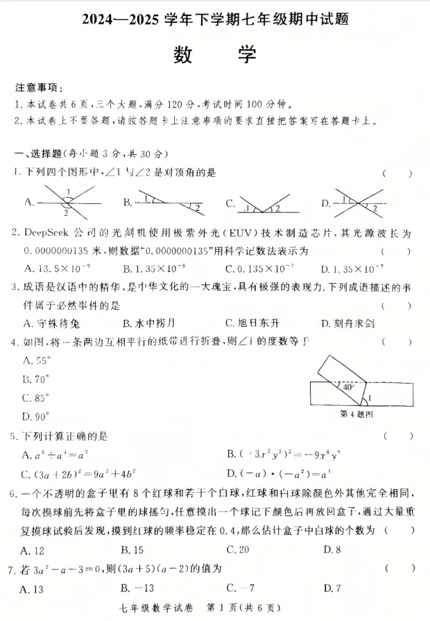 新北师大版七年级下册数学《期中质量检测卷(含答案)》,完整可打印