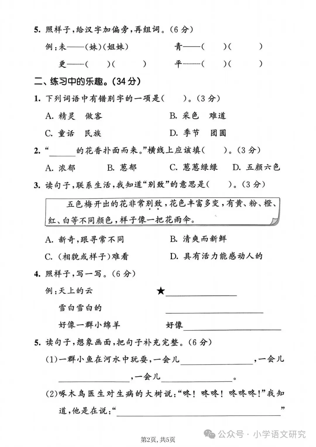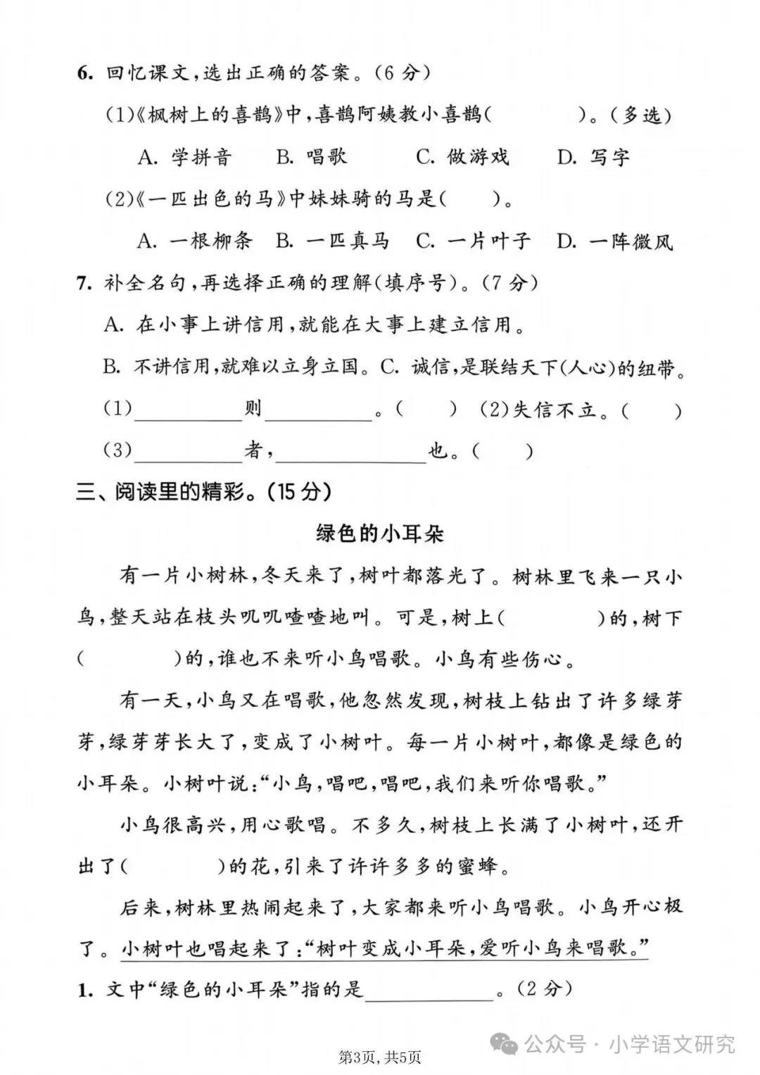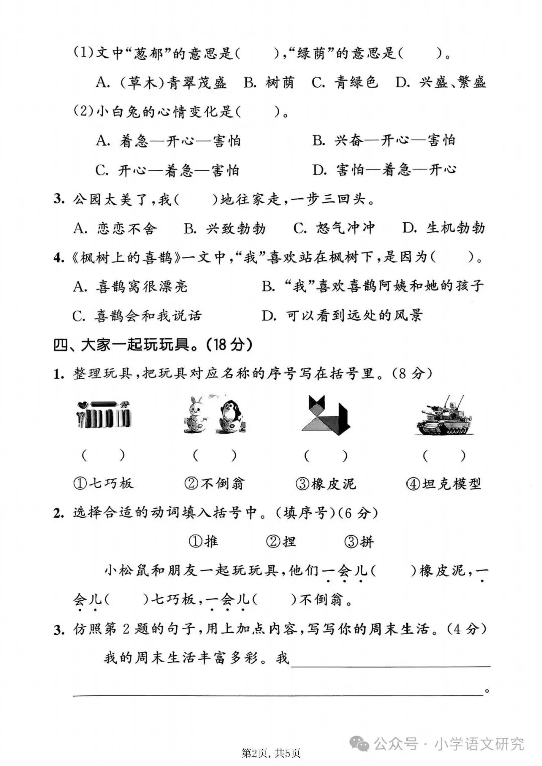 二年级语文下册《第四单元检测卷》3套丨可下载