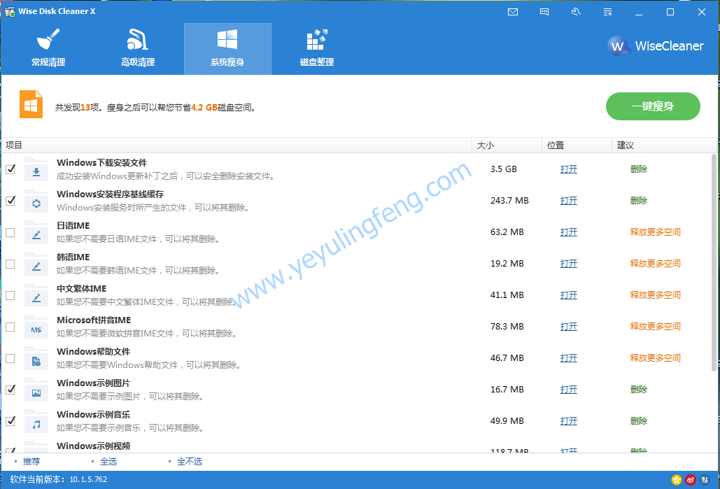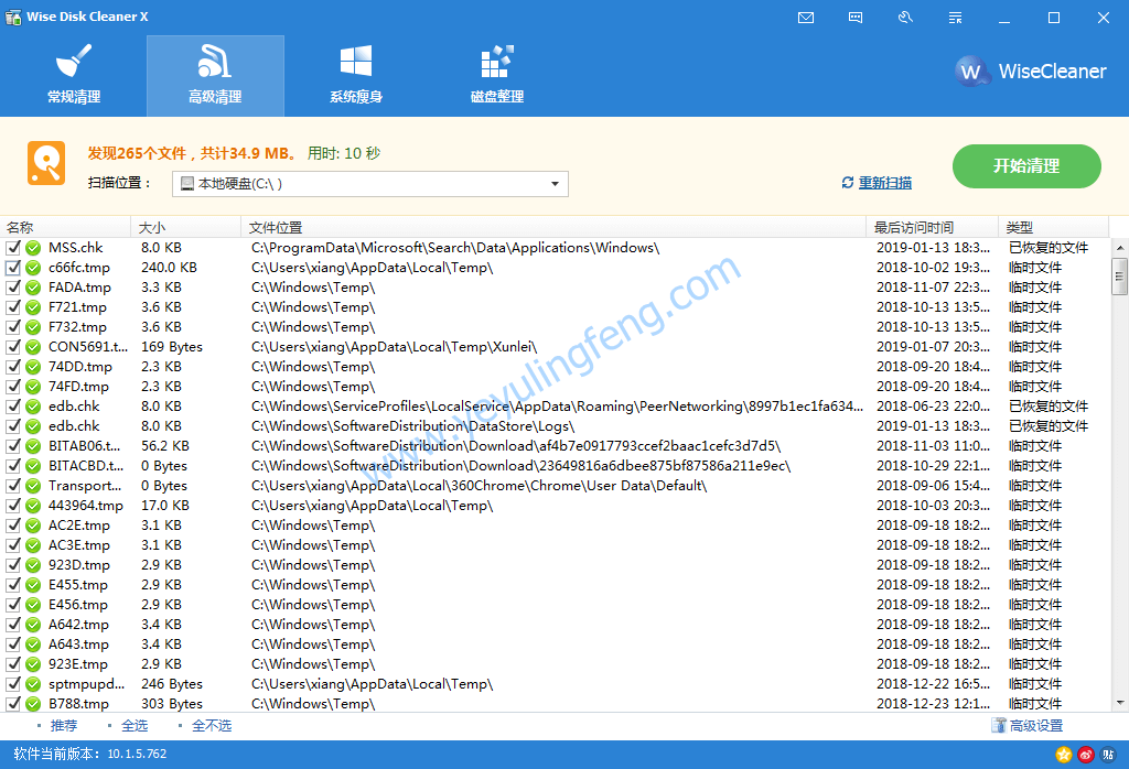 碎片使你的硬盘做过多的额外工作,拖慢你的电脑降低性能,使用WiseDiskCleaner能有效的清理磁盘日常使用产生的垃圾文件,释放更多的空间达到系统瘦身,同时还可以清理大部分主流浏览器访问网页时产生的网页缓存、历史记录以及Cookie,通过清理这些上网痕迹能有效的保护上网时个人隐私不被泄露。