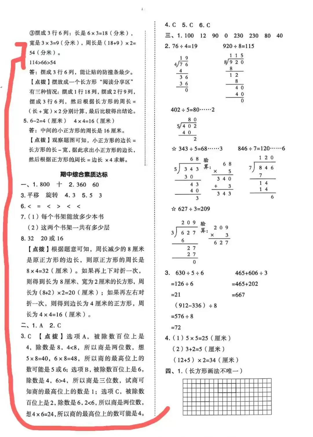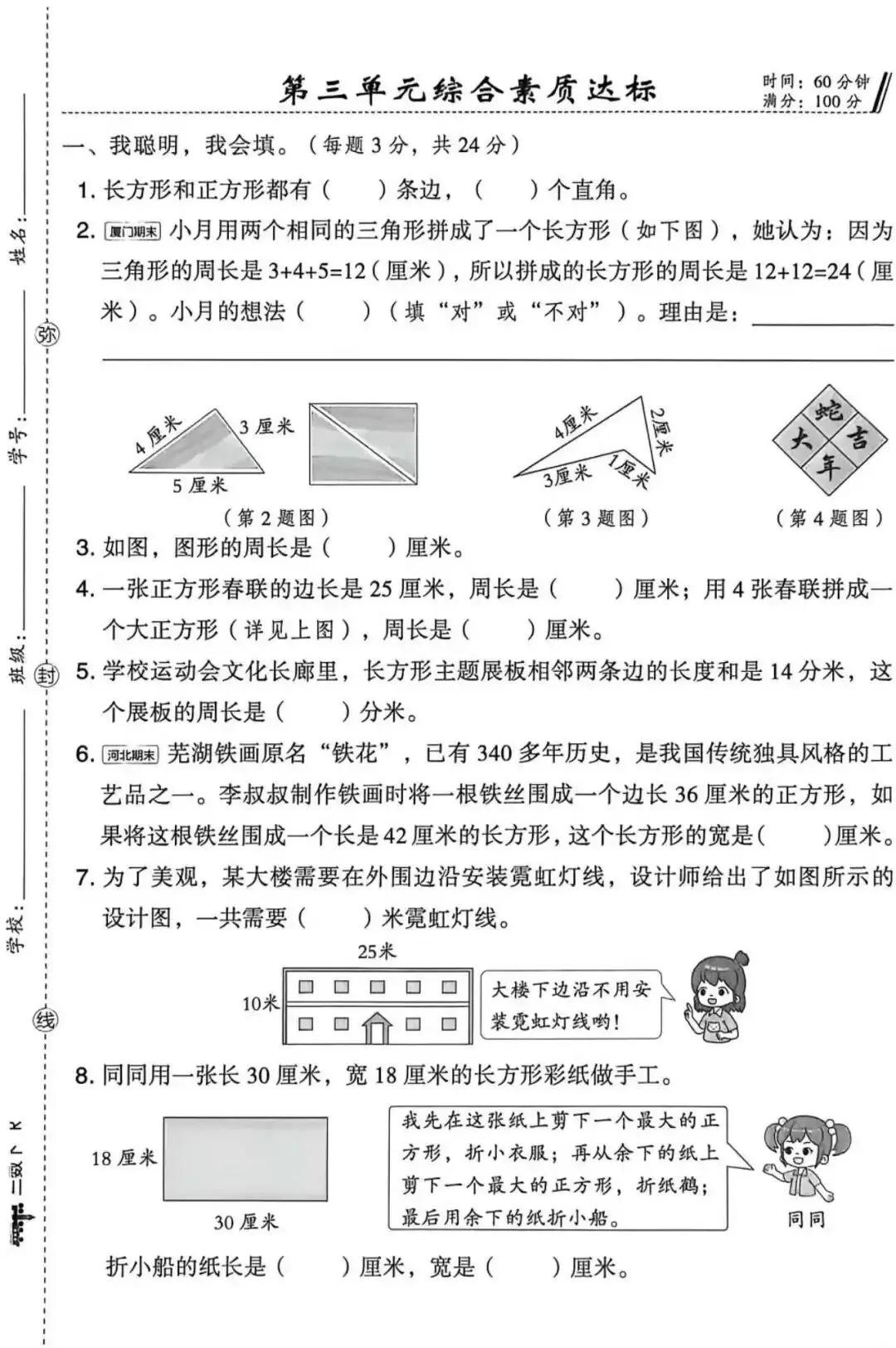 3年级下人教第三单元试卷(带答案,可打印)