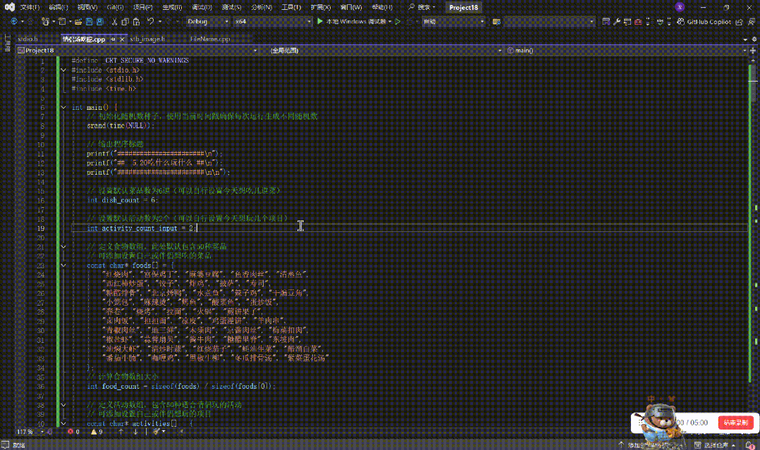 1. 程序功能:程序启动后,会按照用户设定的美食名和游玩项目名,与用户安排的美食数量与游玩次数,随机生成指定数量的美食与游玩项目。可以解决520当天情侣们吃什么、玩什么的终极难题。