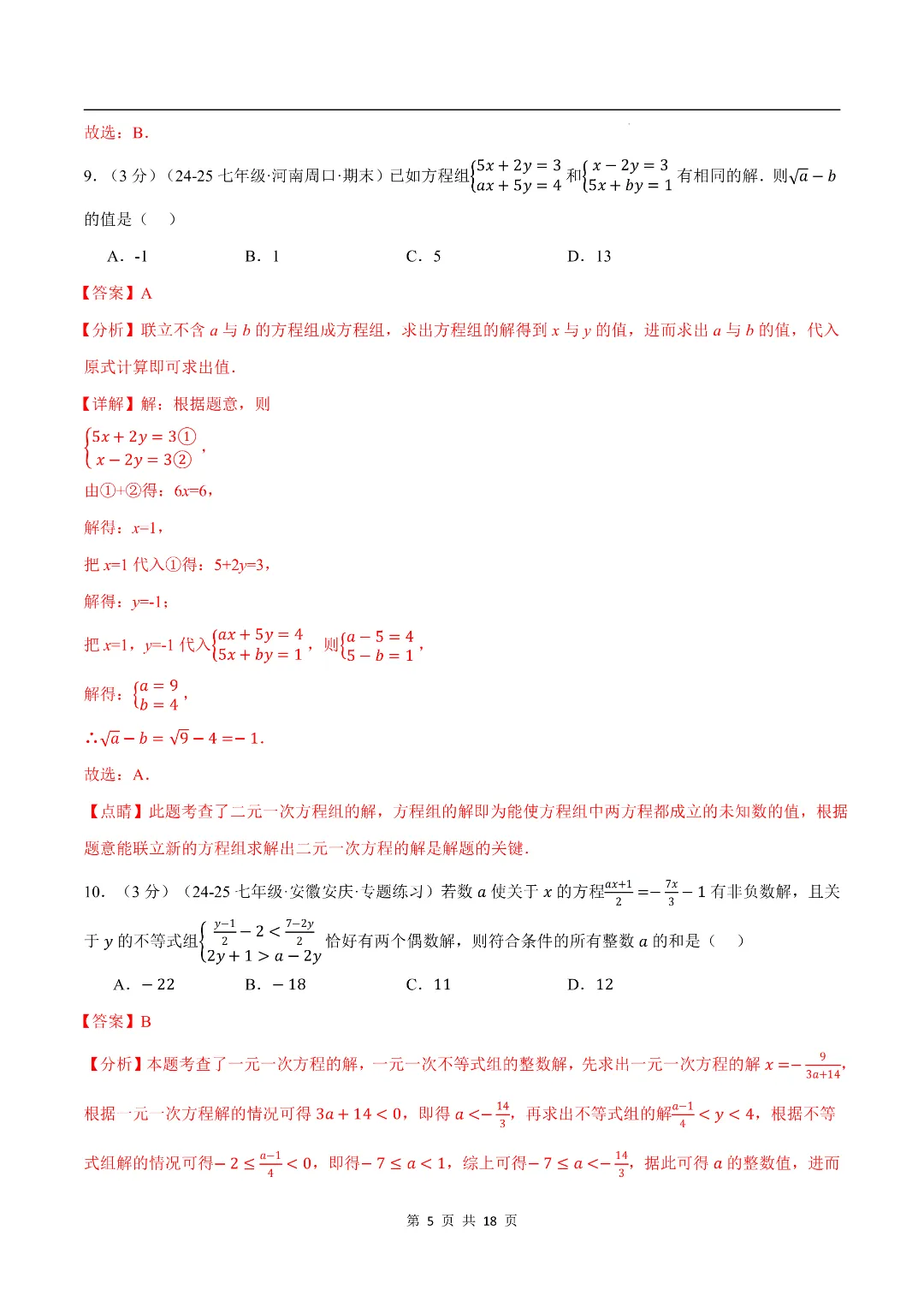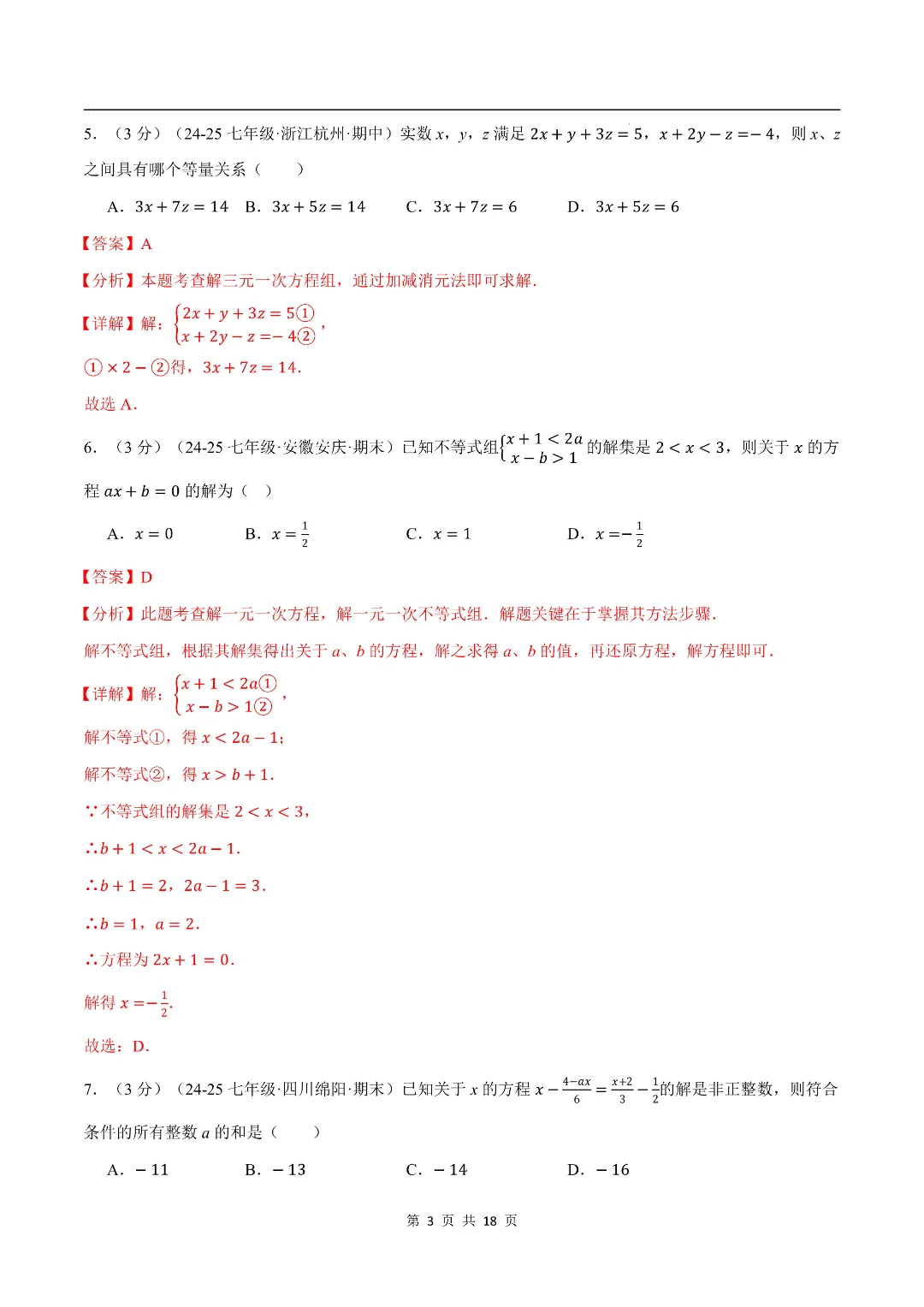 今天给家长们分享的是:25-26年春新七年级下册华东师大版数学《期中考试培优测试卷》附答案解析‖高清电子版可打印