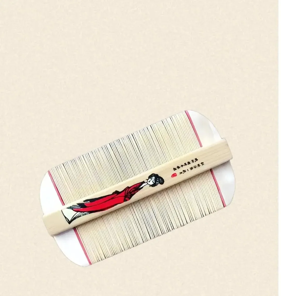 这个薄薄的小东西叫篦子,方口利索,齿细得扎人,木头梳身上画着人,红艳艳的衣服配上细密的齿,小时候家里老要洗头,头发湿淋淋时,大人一手按在肩上,一手举着这篦子,从发根慢慢梳下去,有时候还得小声念叨“甭乱动啊,给你梳服帖”,那感觉,像是坐在太阳底下偷懒,母亲的手劲说大不大,说小不小,老在耳边催着“快点收拾好,还得做饭呢”。