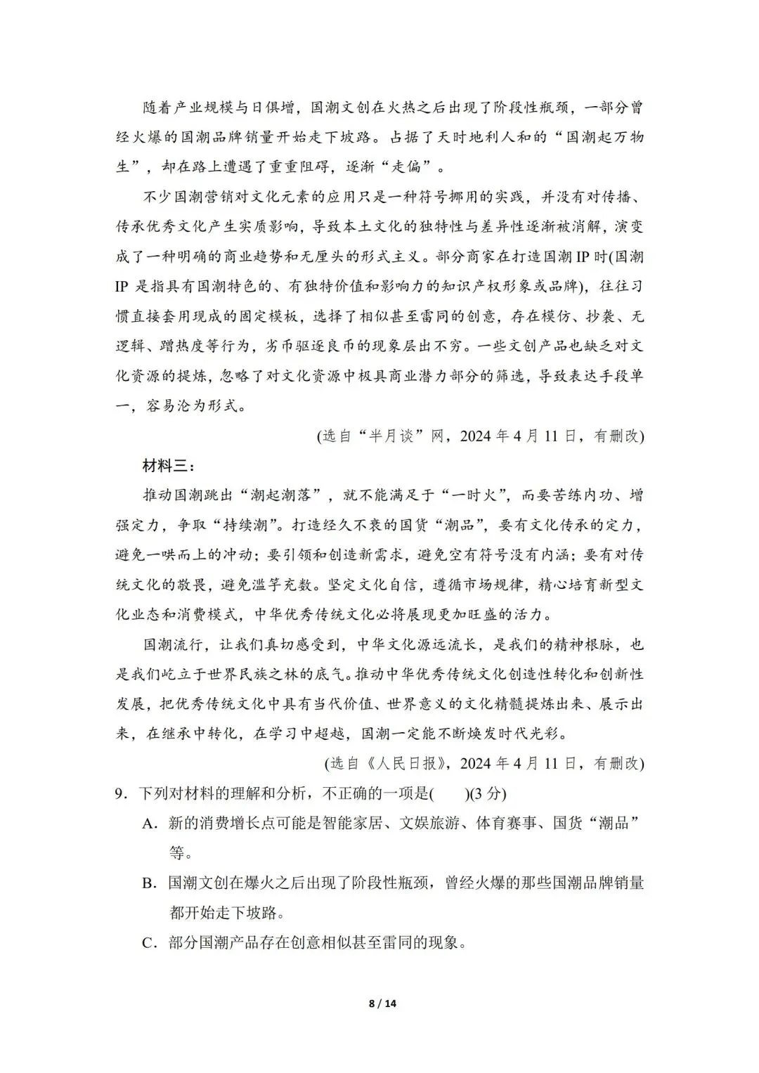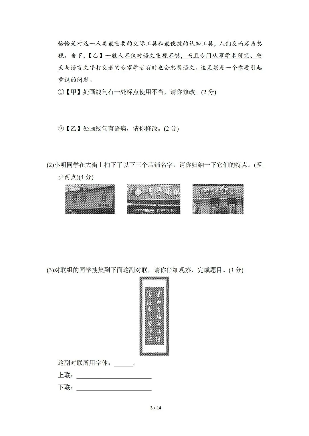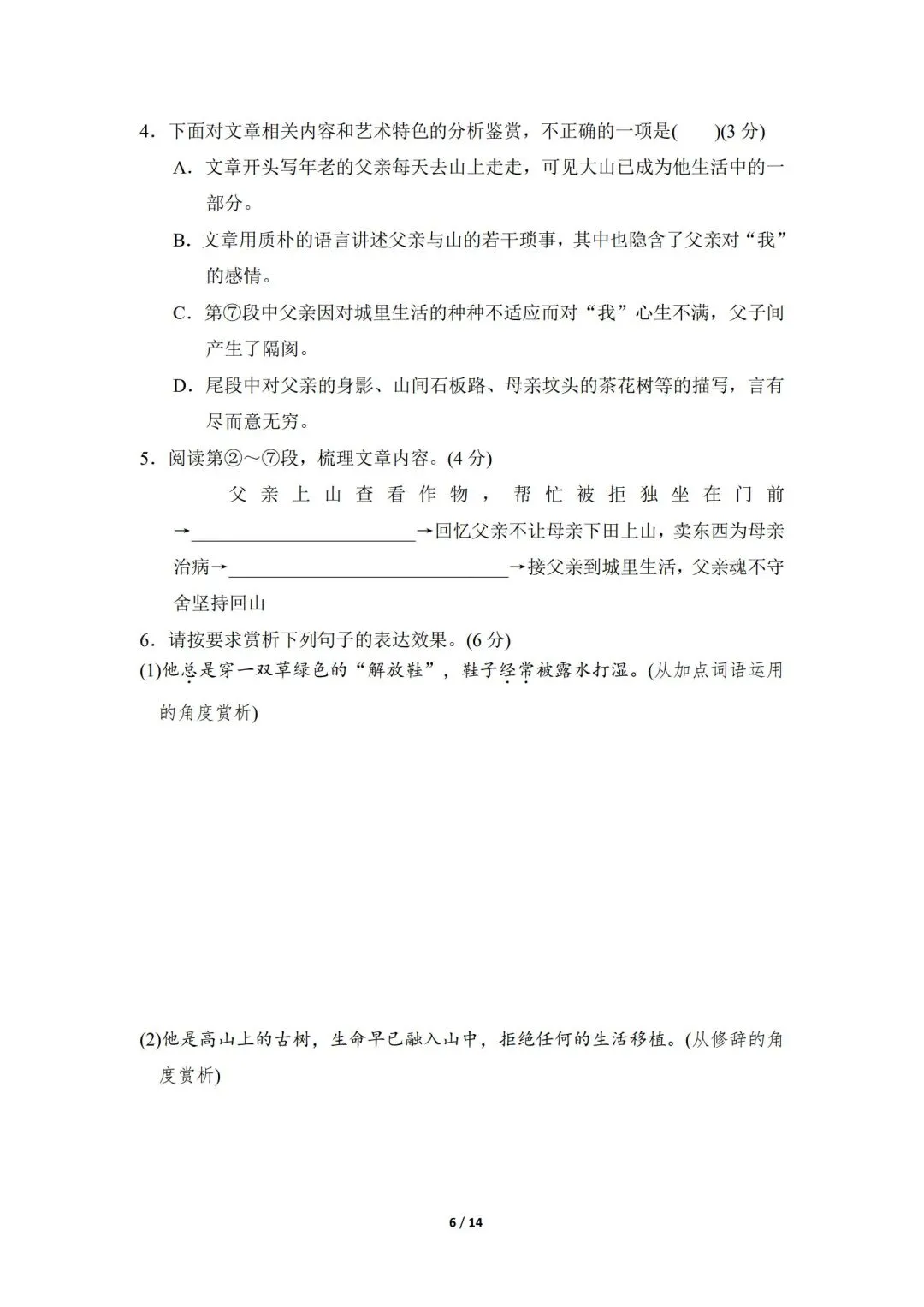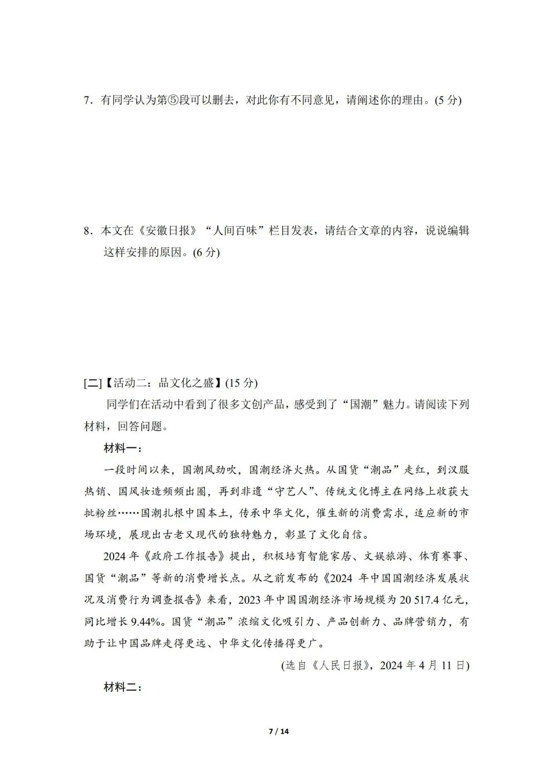 七年级下册《语文期中测试卷+答案》|完整电子版可打印
