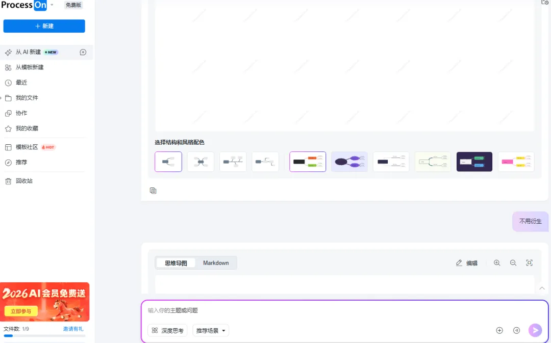 2.复制粘贴做好的大纲到Process On对话框,也可以选择你想要的结构和风格就可以点击生成啦