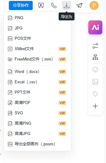 3.这个软件最方便的就是可以免费导出,我之前做思维导图的时候各种找资源导出,都是要会员和充钱,真的是头大,哪有那么多钱哦