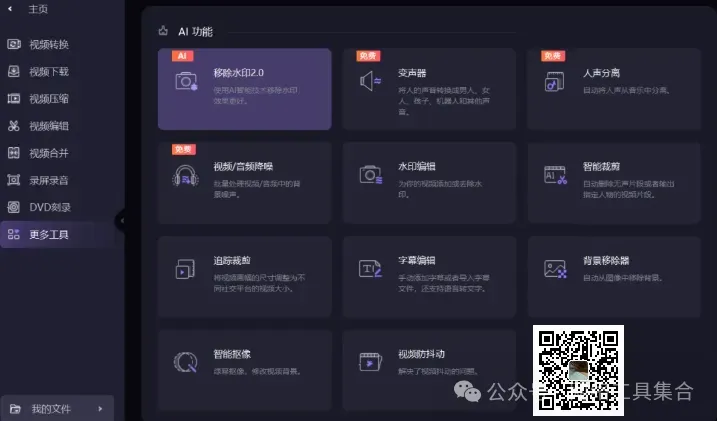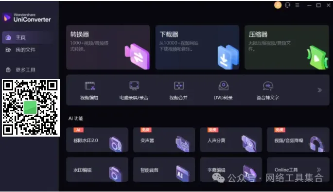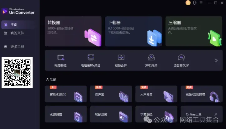 ,并回复:进群Wondershare UniConverter 万兴优转专业音视频格式转换器,集视频转换、视频压缩,录屏剪辑,DVD刻录于一身的一站式视频格式转换器工具箱,还能在1万多个视频网站下载视频,以及很多AI功能。