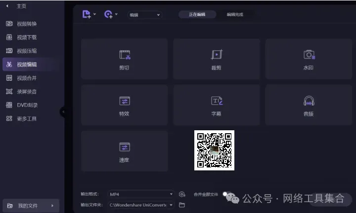 万兴优转工具箱由公众号【软件棒棒哒】整理相关Patch Crack KeyGen独家发布,Wondershare UniConverter 是一款强大的全能格式转换器,在国内名称叫“万兴优转”国外名称就是“万兴全能格式转换器”万兴优转专业音视频格式转换器,集视频转换、视频压缩,录屏剪辑,DVD刻录于一身的一站式视频格式转换器工具箱,功能强大,转换速度提升30倍,保持高清无损画质,预设可自定义的格式,随时随地欣赏视频,高清无损压缩音视频,可视化调节视频大小,可导入视频格式多,压缩后匹配各设备,释放存储压力,压缩速度快,保持高清无损画质,小尺寸高画质,即刻预览压缩视频效果,高清无损压缩1000+格式,Wondershare UniConverter(万兴优转)自定义压缩设置实时预览,批量快速压缩音视频文件,万兴优转录屏功能简单易用,热门视频网站录屏,实时游戏录制,网课教学录制,软件操作教程录制,直播视频录制等众多场景,是你不可或缺的录屏神器。