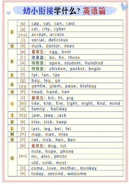 幼小衔接英语学什么,PDF电子版,可打印,免费下载