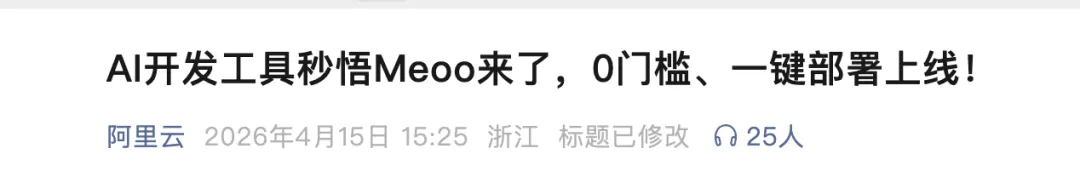 阿里ATH事业群新产品:AI开发工具秒悟Meoo来了,0门槛、一键部署上线!