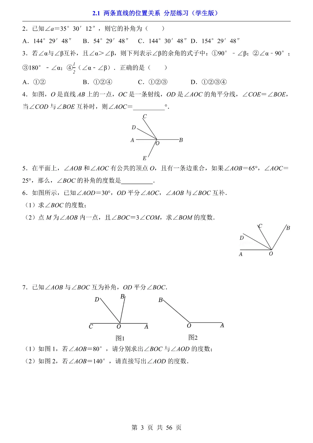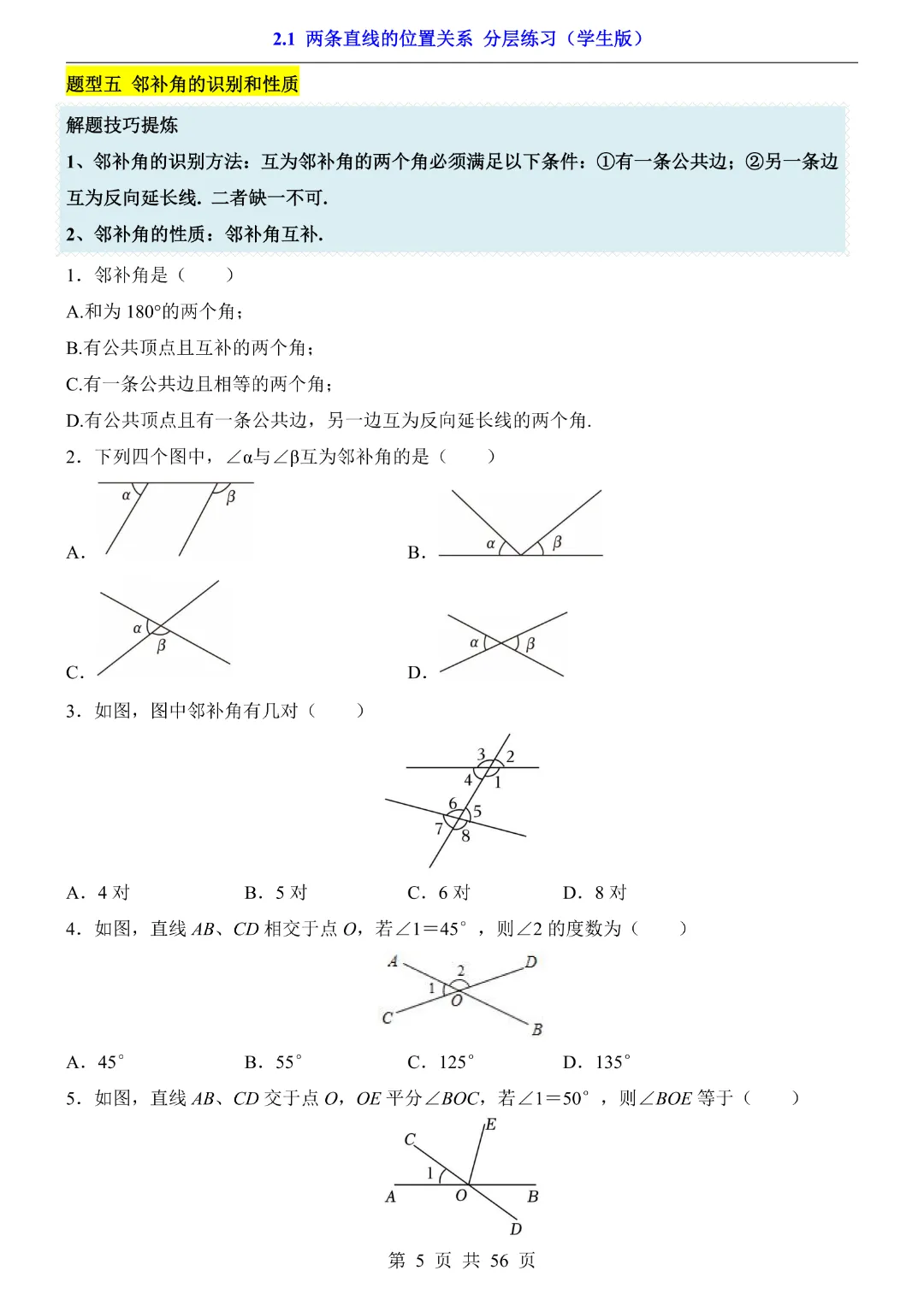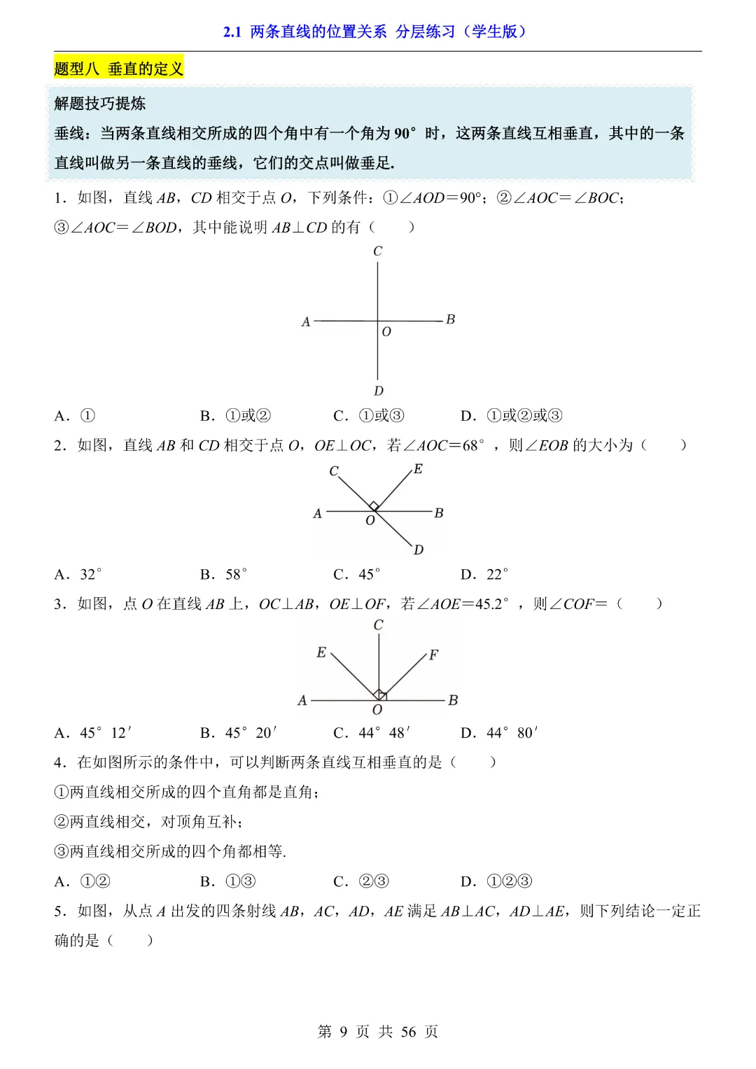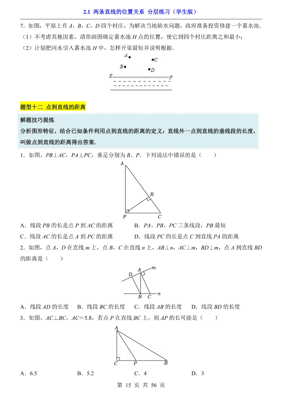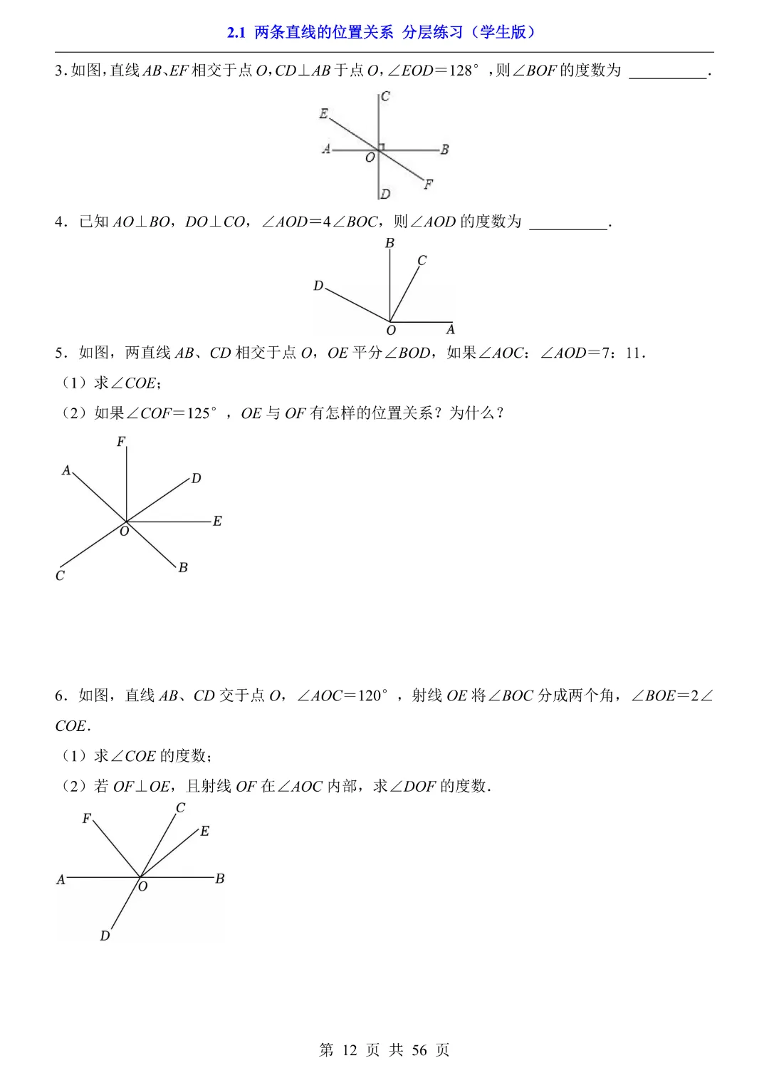 今天给大家分享的是:【七年级下册数学】【北师大版】期中考前冲刺2.1 两条直线的位置关系分层练习带答案|完整高清电子版可打印