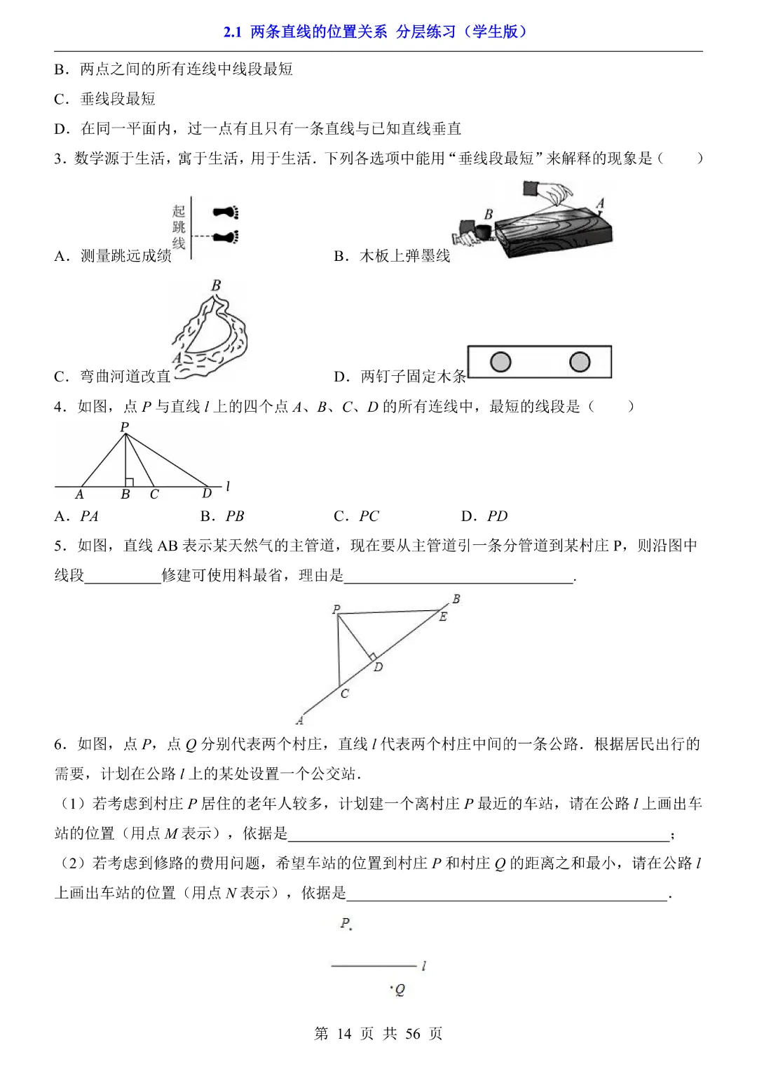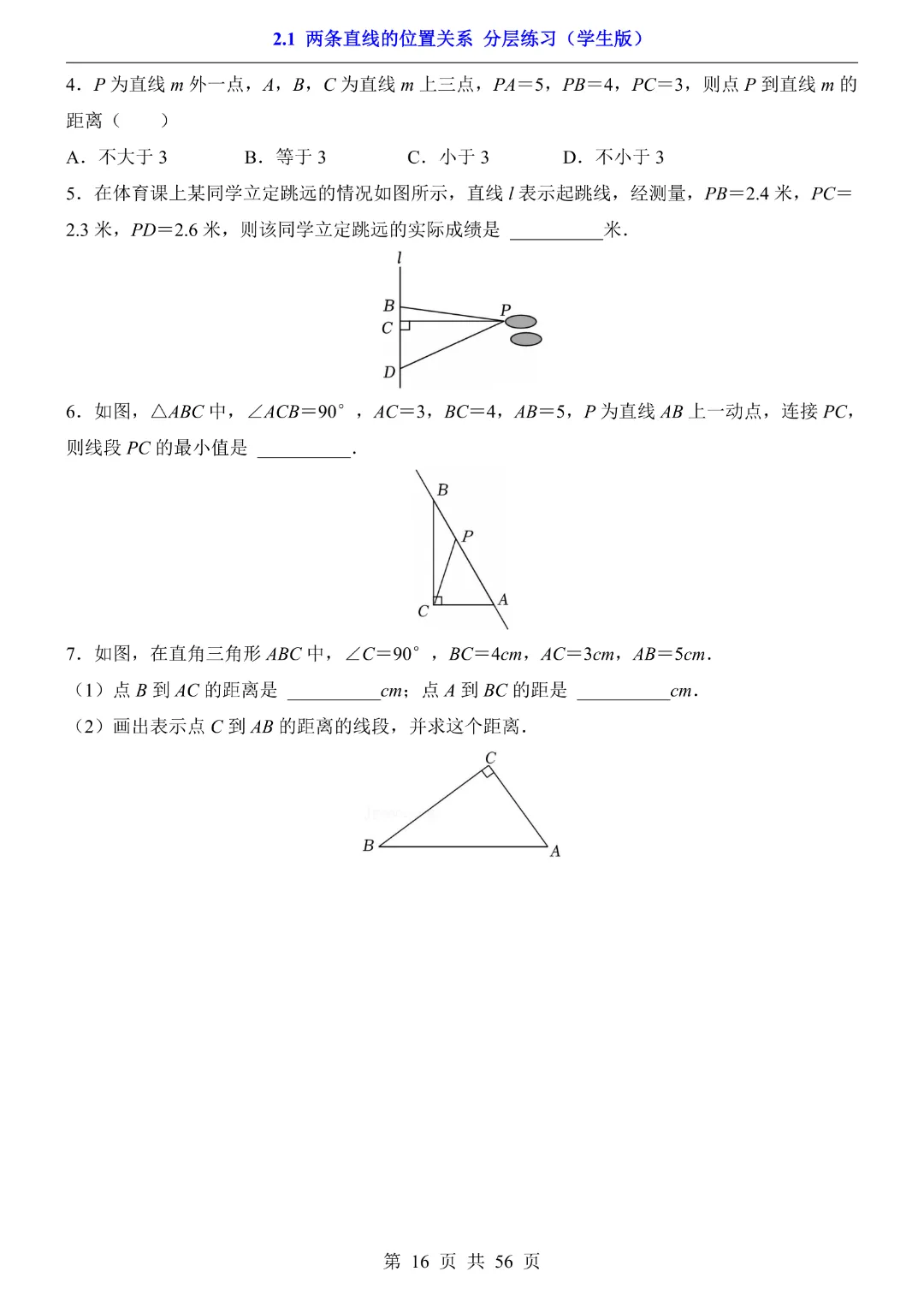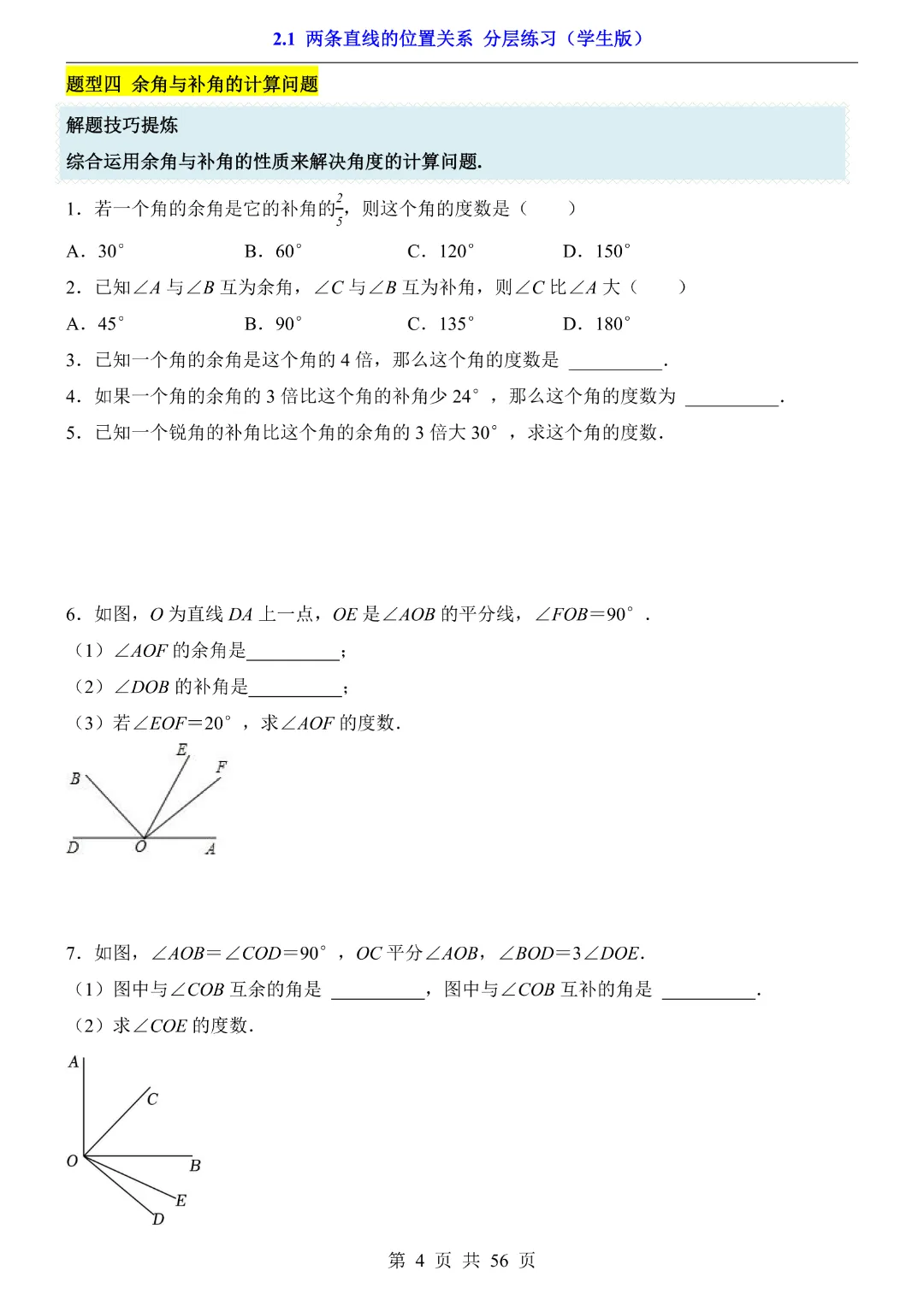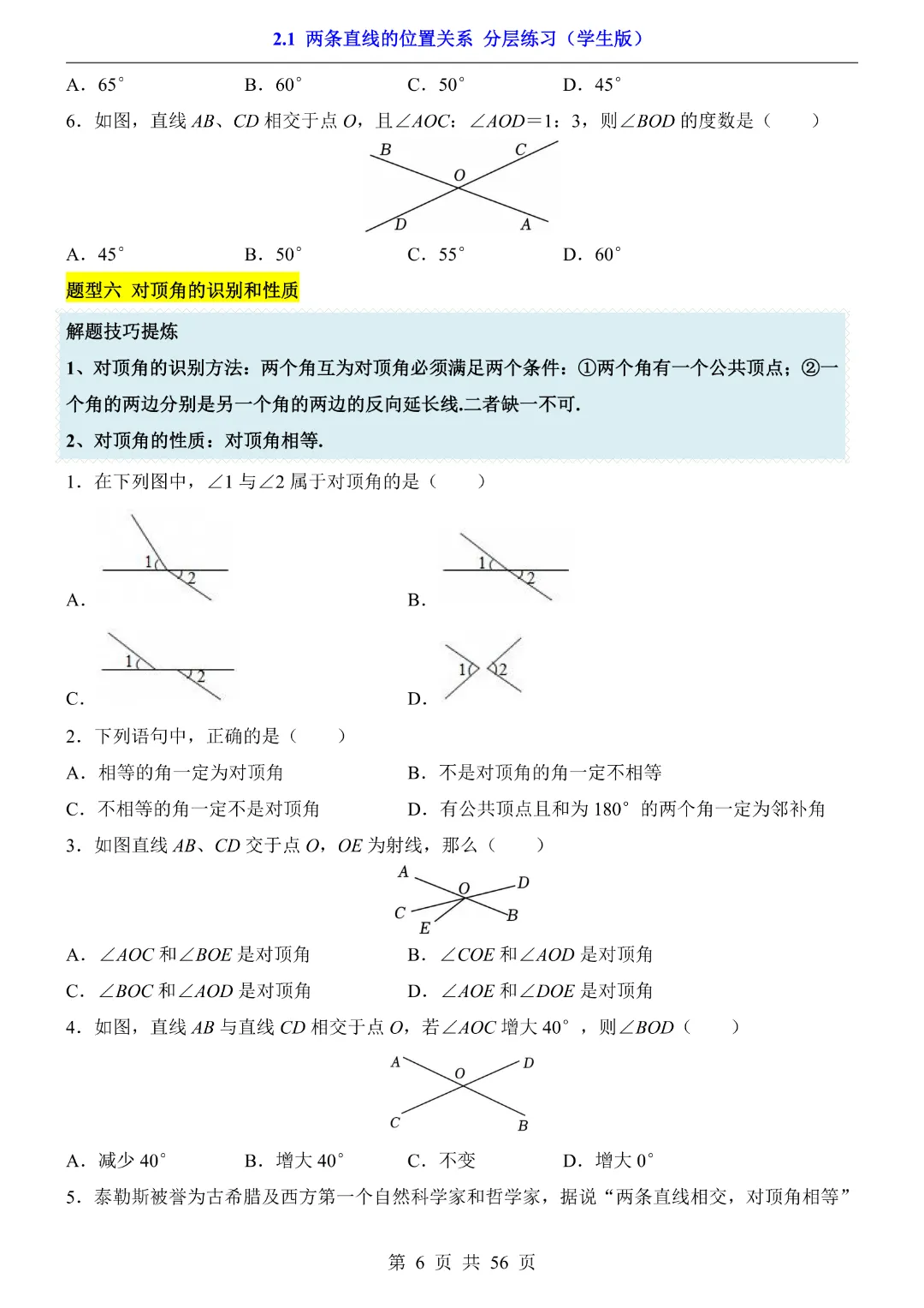 今天给大家分享的是:【七年级下册数学】【北师大版】期中考前冲刺2.1 两条直线的位置关系分层练习带答案|完整高清电子版可打印
