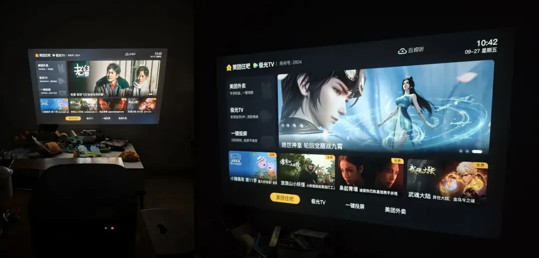 今日福利一:捡漏三台商用级投影仪,腾旅MC-T5,腾讯极光合作出品,原价3588元,采用 0.47英寸DMD芯片,物理分辨率为 1920×1080,兼容4K解码;ANSI亮度约750流明,晚上开灯看也可以,内置双10W音响效果好。但是也有缺点,是商用系统,需要刷机才能正常使用(闲鱼刷机90元左右),如果不刷机,那就只能HDMI连接电脑或者电视盒子使用(闲鱼买个二三十的电视盒子就可以了,看你需要)。价格280元包邮一台,老规矩,微信先到先得。只有三台,错过就没了,更多效果图微信联系。