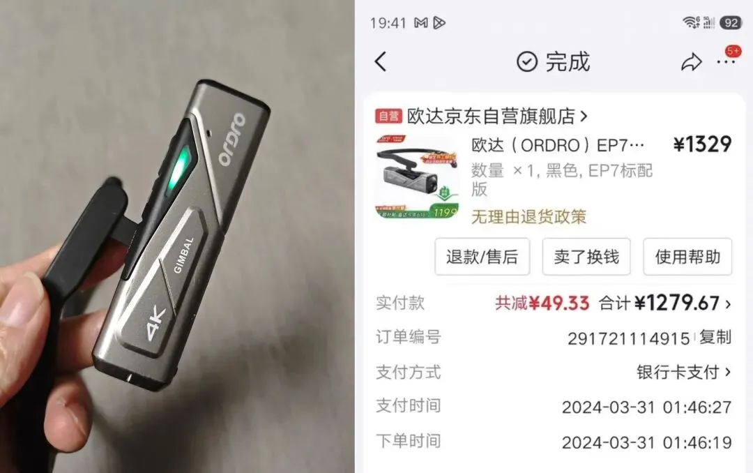 今日福利二:一款欧达ORDRO EP7头戴式4K摄像机,原价一千多。不过镜头碎了一点点,不影响使用和效果,那就低价处理吧。价格228元包邮,老规矩,微信先到先得。