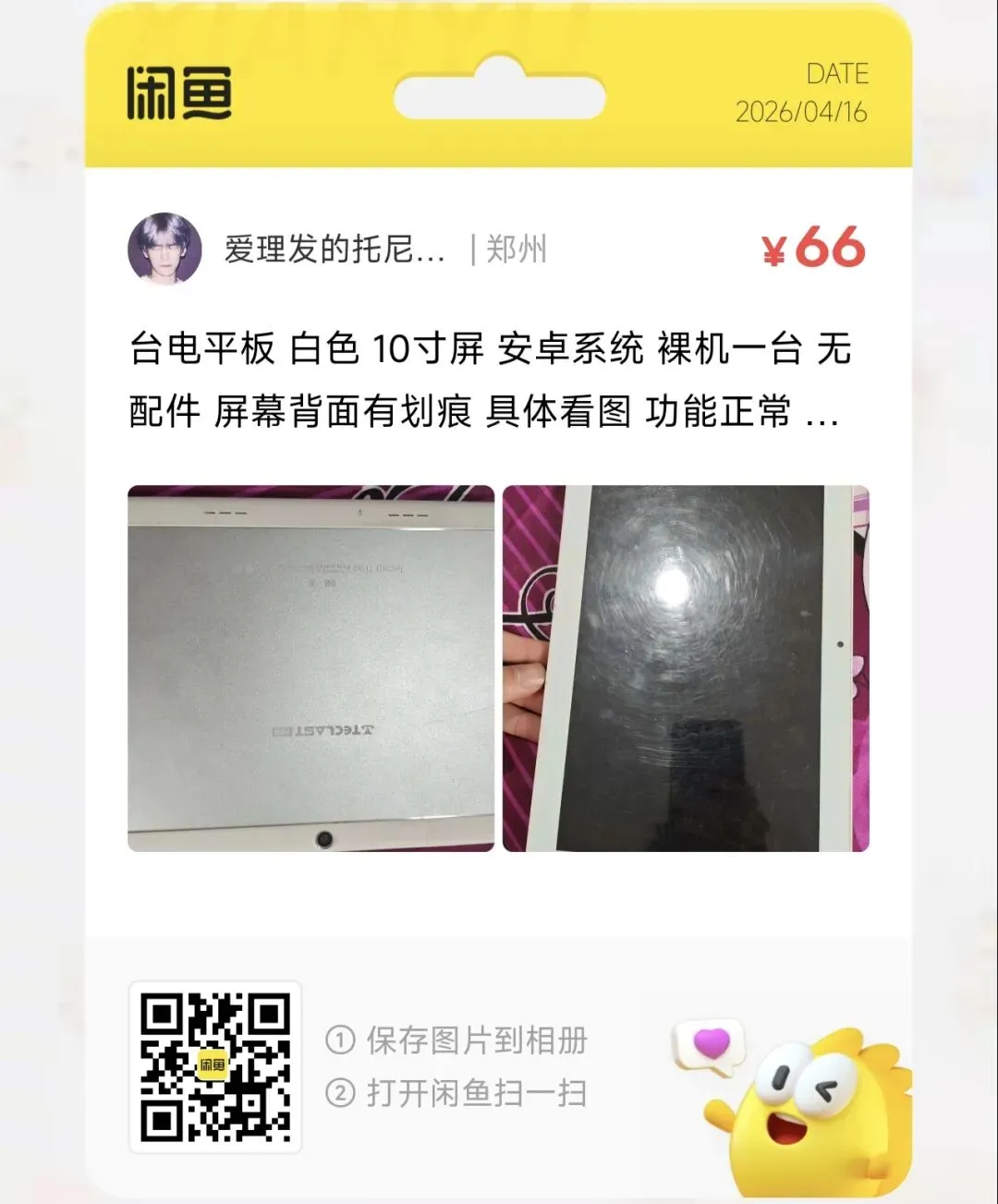 一台66元的台电平板 白色 10寸屏 安卓系统 裸机一台