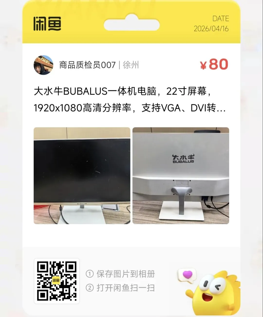 一台80元的大水牛BUBALUS一体机电脑,22寸屏幕