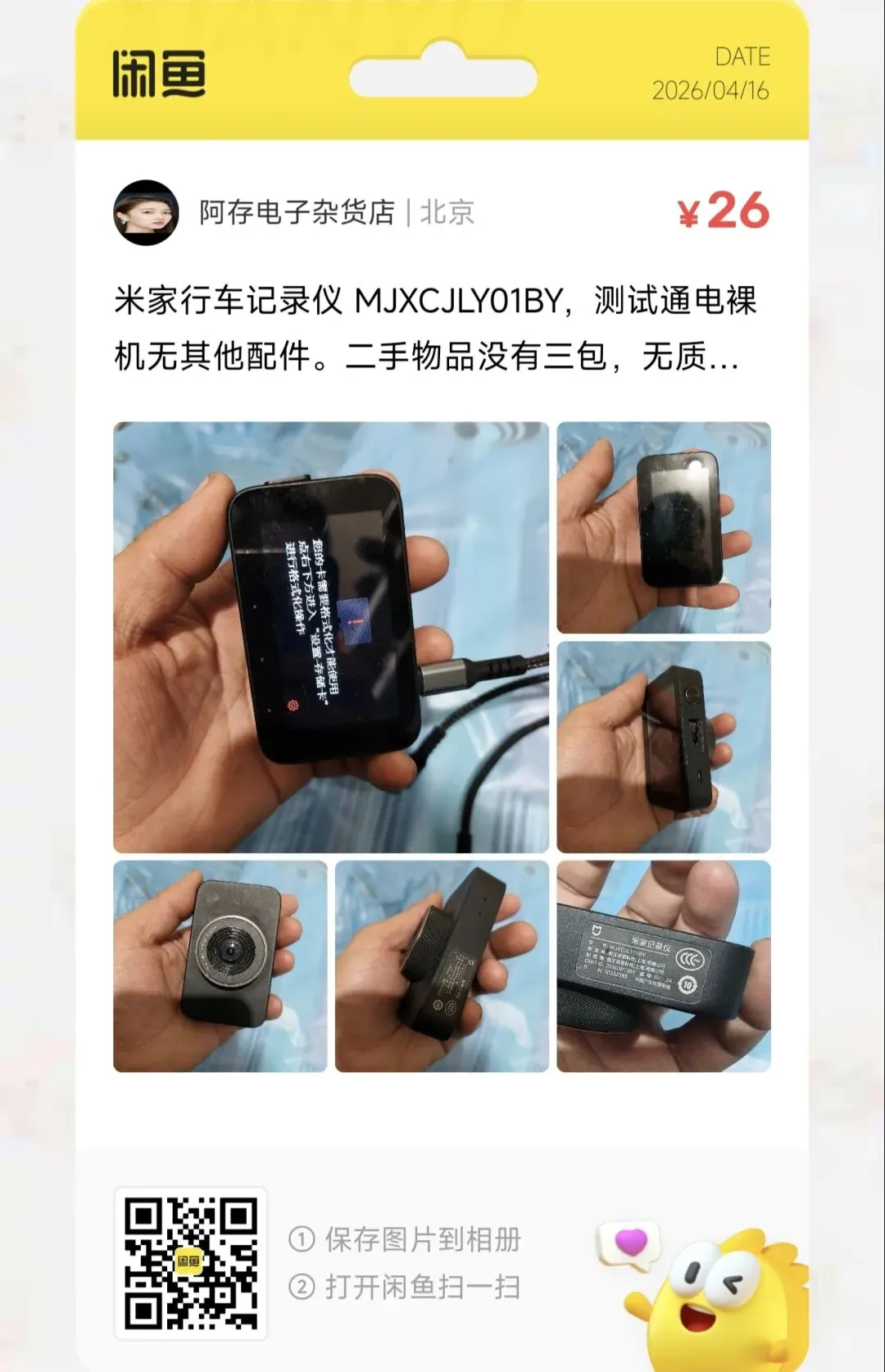 一台26元的米家行车记录仪 MJXCJLY01BY
