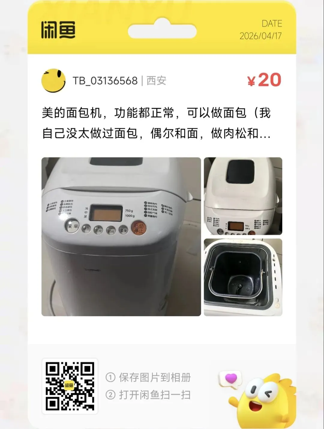 一台30元包邮的美的面包机,功能都正常,可以做面包