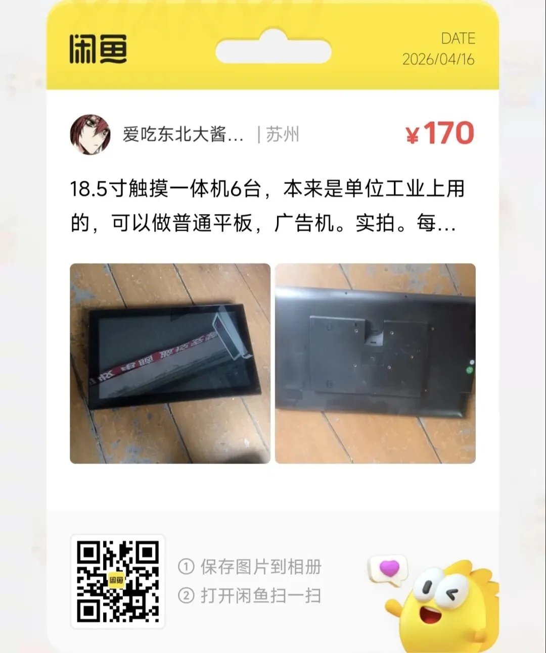 18.5寸触摸一体机6台,本来是单位工业上用的,可以做普通平板,广告机。实拍。每台170元,全走可以优惠。