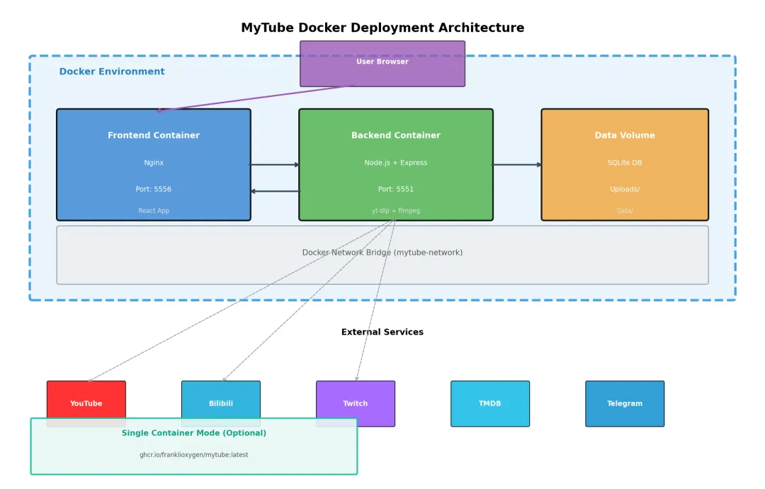 • Docker Hub: https://hub.docker.com/r/franklioxygen/mytube -