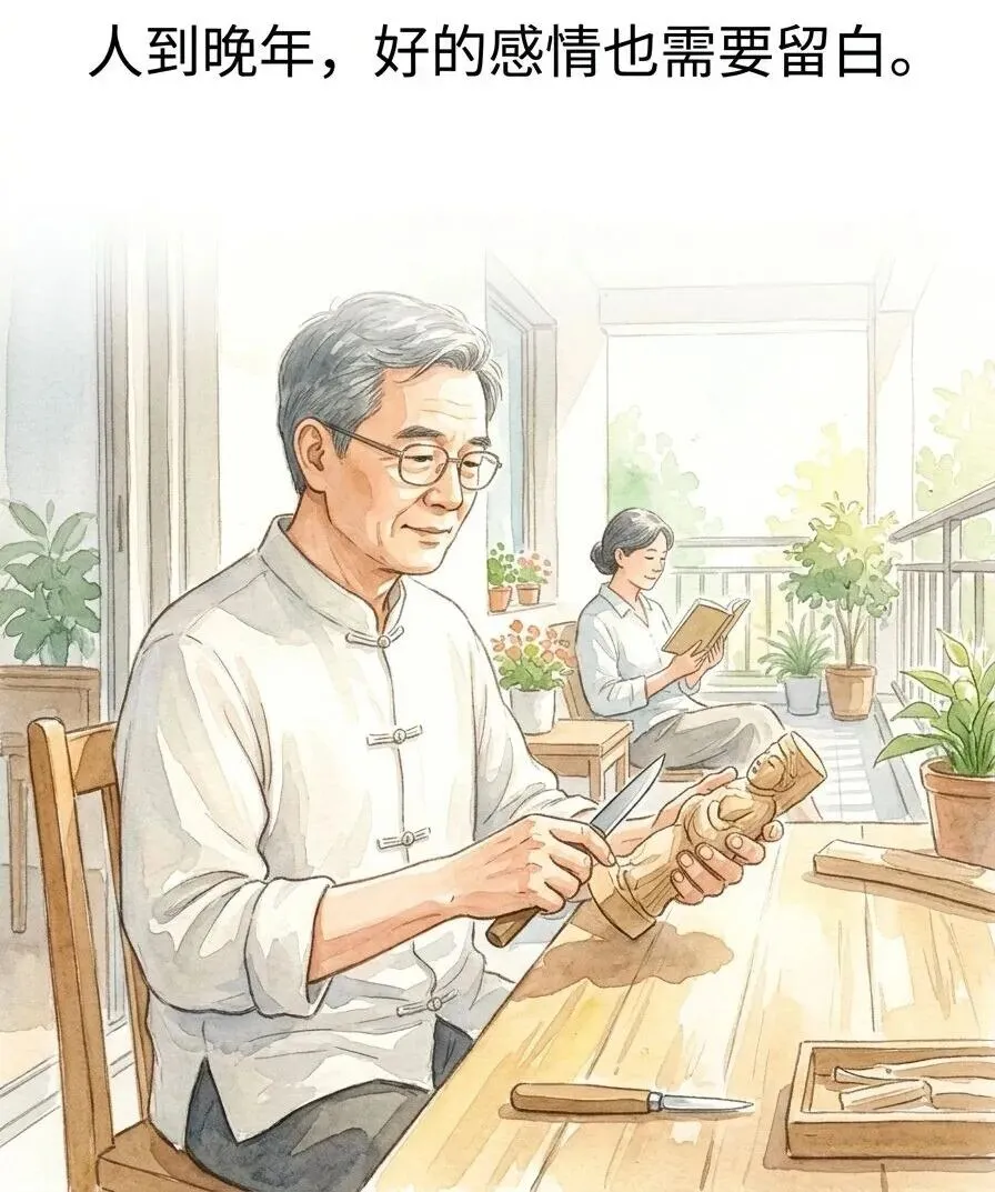 她不一定懂你的木雕、你的字画、你养的花花草草,但她绝对不会去贬低和打断。她知道那是你心灵的栖息地。能包容你这份“痴”的老伴,说明心里是真的有你。