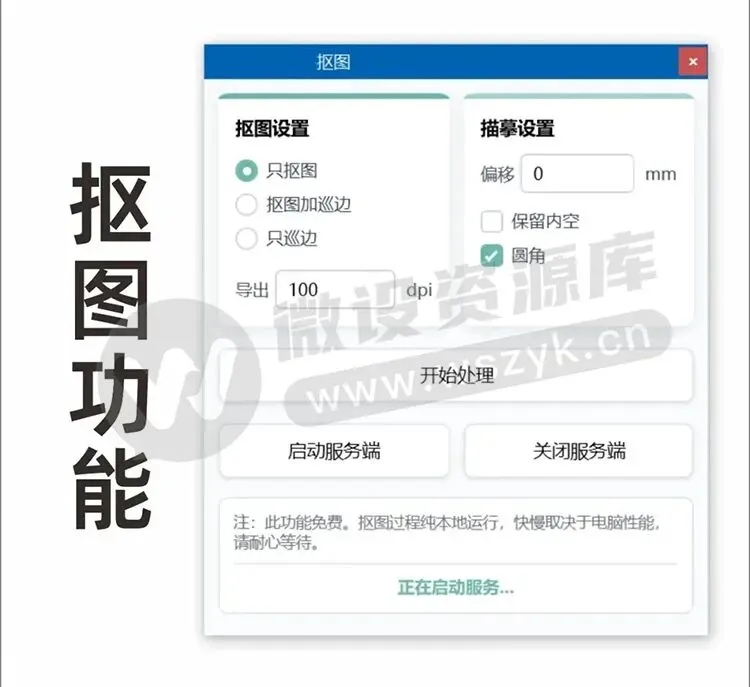 本地离线免费使用,基于 rmbg 开源抠图模型(开发者标注为 “目前能找到的最好开源抠图模型”),实现位图智能背景移除,同时支持抠图 + 描摹巡边功能
