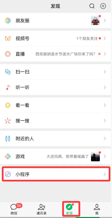 (1)打开微信手机版APP,找到“发现”➨“小程序”,搜索,如:去印大师、一键无损去水印、水印大师等,推荐使用“去印大师”。假如在以下操作过程中出现不能解析视频、不能去水印或者粘贴地址、平台不对等信息,则再重新换一个同类型的小程序,试一试。