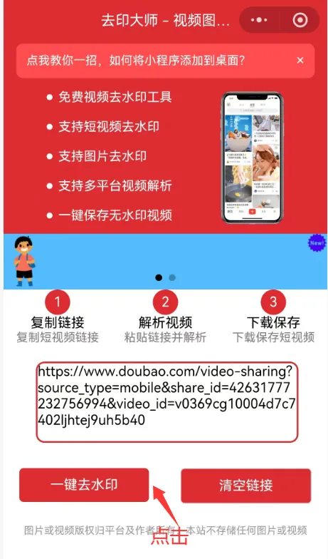 (4)待出现此视频,经试播正常后,可点击“保存到手机”,即可在手机相册、图库中找到已保存的无水印视频。