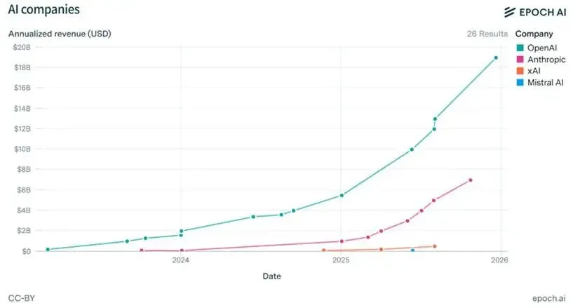 紧随其后的是OpenAI,也开始把企业级市场作为核心增量来源:25年收入占比达到40%,今年有望继续提升到60%。