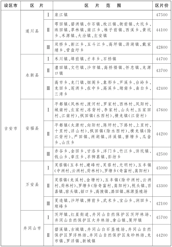 3.实施期间涉及行政区划调整的,区片价标准保持不变。