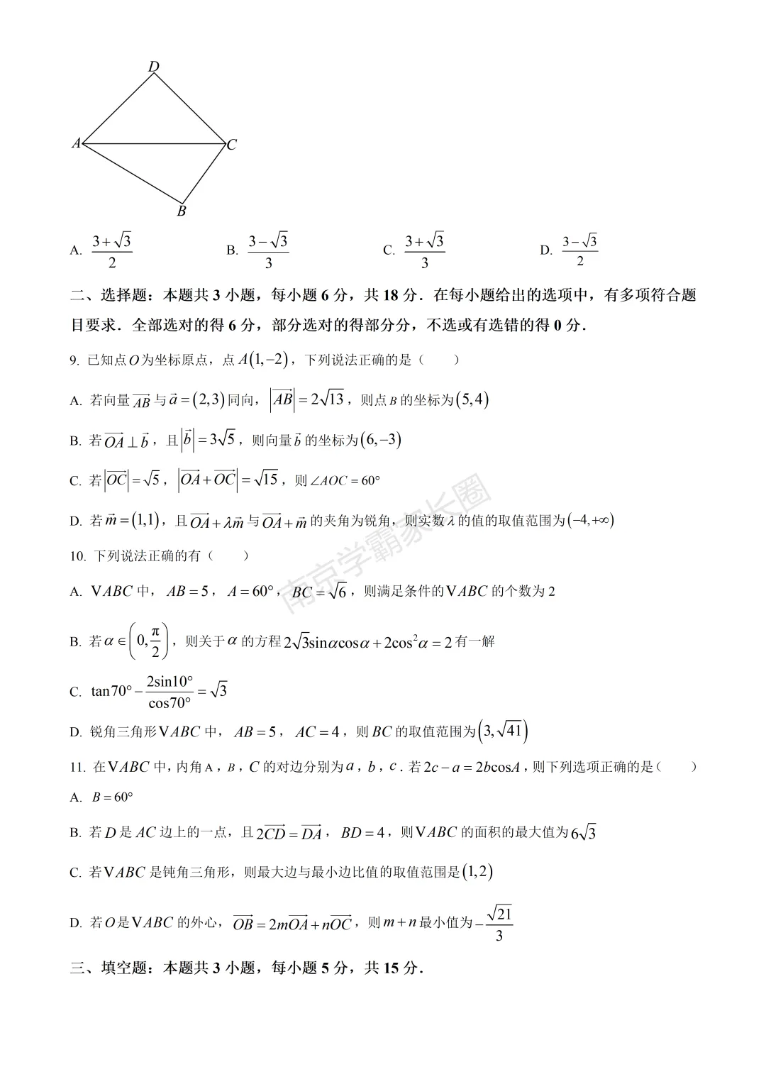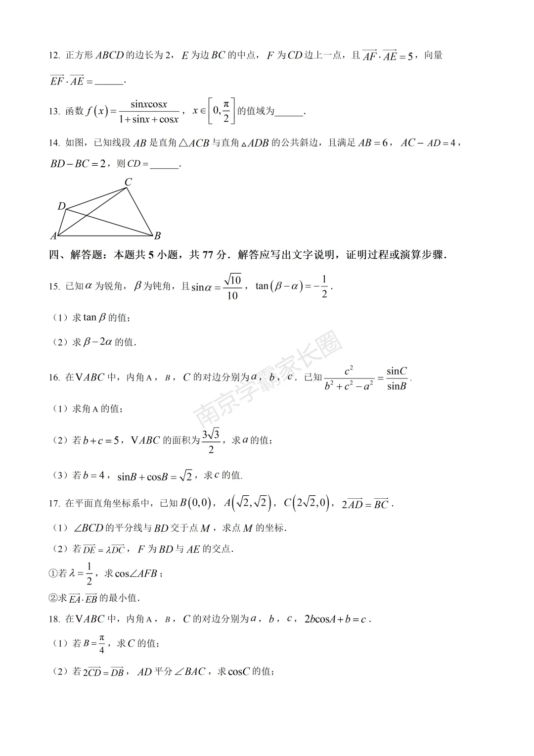 今日分享:南京外国语学校24-25年下学期期中考试数学试卷,可打印完整版!