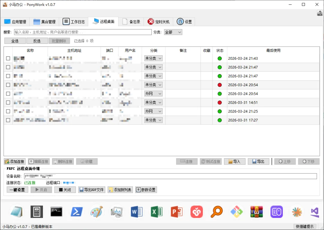 小马办公集成的是FRP 内网穿透方案,配合 RDP 协议。只要你的电脑能上网,不管在哪都能连。