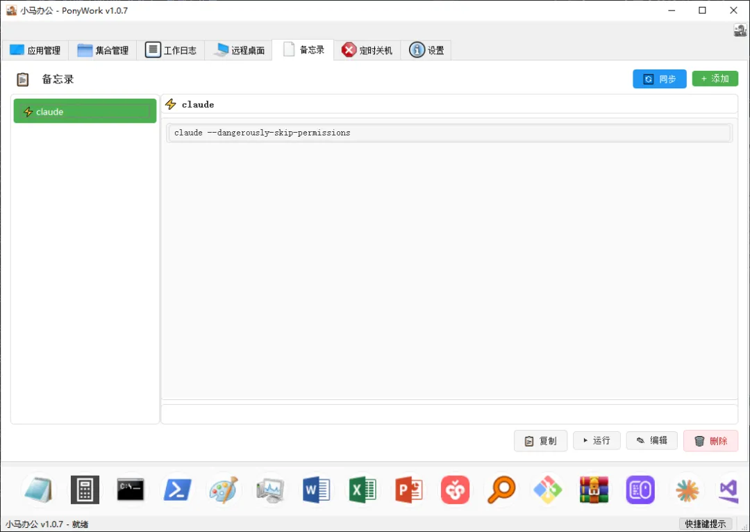 最实用的是批量启动——早上来公司,点一下”启动开发环境”,VS Code + Word + QQ + 企业微信 全都给你开好,省心。