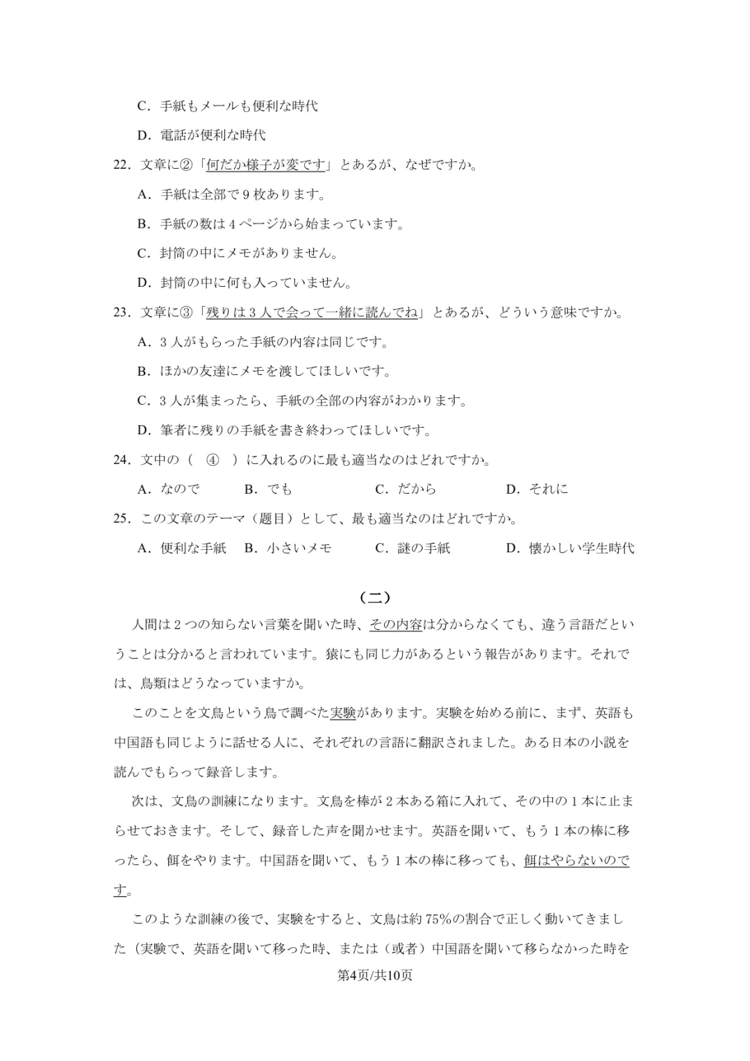 辽宁辽西重点高中2025-2026学年度下学期高二4月月考日语试卷