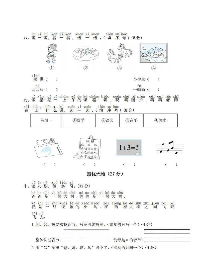 幼小衔接|语文汉语拼音拔尖提优测试(可打印)