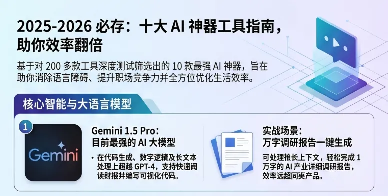 实操建议:别把它当聊天机器人。直接当「超级搜索引擎+代码助手+文档总结器」用。有长文档需要看的,先扔给Gemini问重点,能省80%时间。