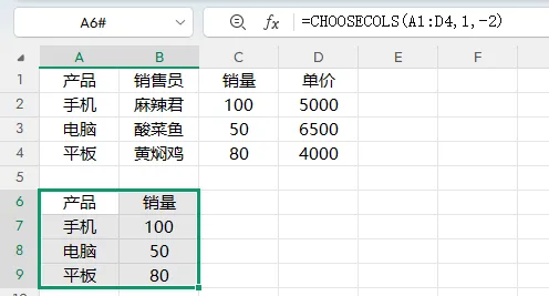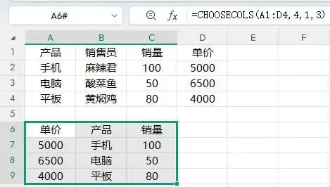 现在咱们换成CHOOSECOLS函数写法: