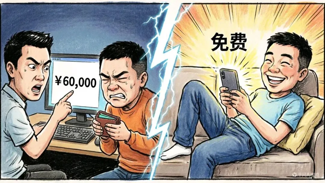 从6万到1000块,这就是AI干的事儿。不是AI疯了,是AI把开发成本砸到了地板砖上。