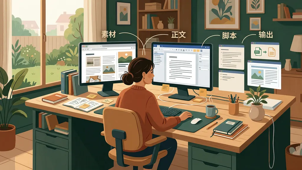今天看到的一篇文章,明天记下的一段判断,后天跑出来的一张表,昨天和 AI 对出来的一版提纲,还有你删了又改回来的那段话,它们会互相碰,互相改,最后慢慢长成一个输出。