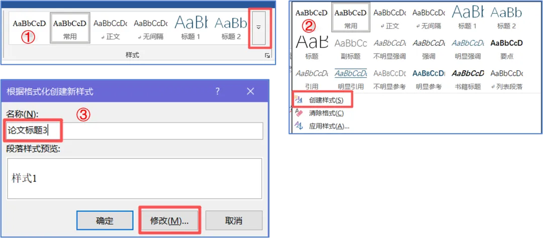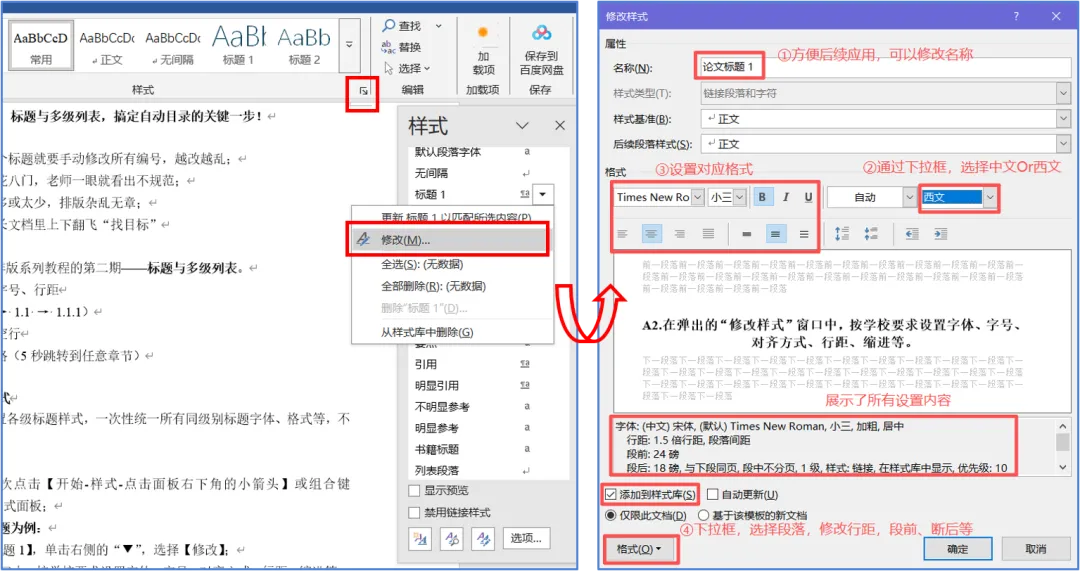 A1.右击【标题1】(或标题2、标题3),选择【修改】;