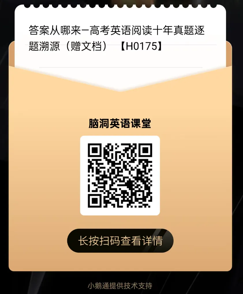 附赠的PDF文档是:2016–2025年全国卷阅读理解,逐题标注原文对应、替换类型、推理链——400多道题,一道不落。买了直播,资料区直接下载。