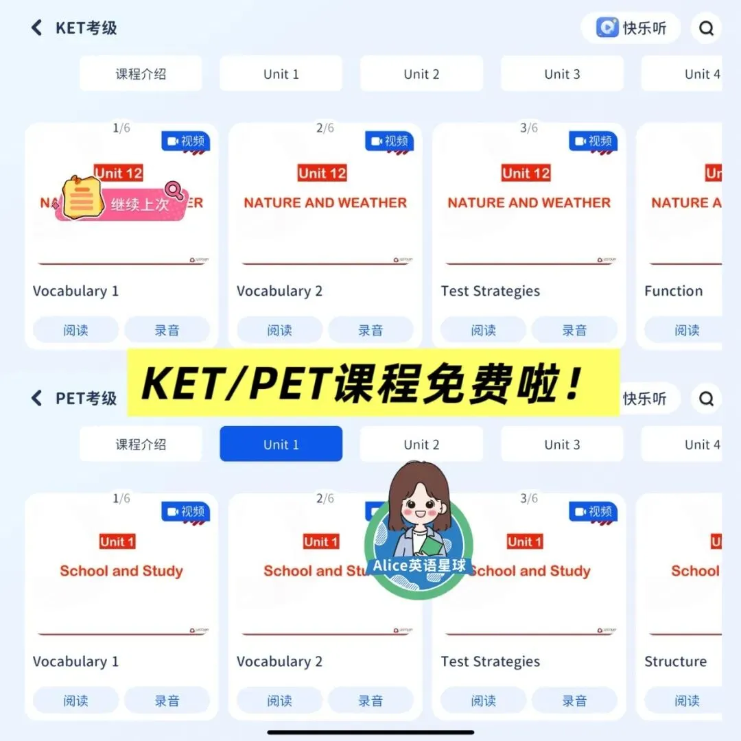 Alice英语星球App!适合0-15岁的英语学习app,原版教材、分级、绘本、公立课本、单词闯关、趣配音、PET、KET在线题库,都有!