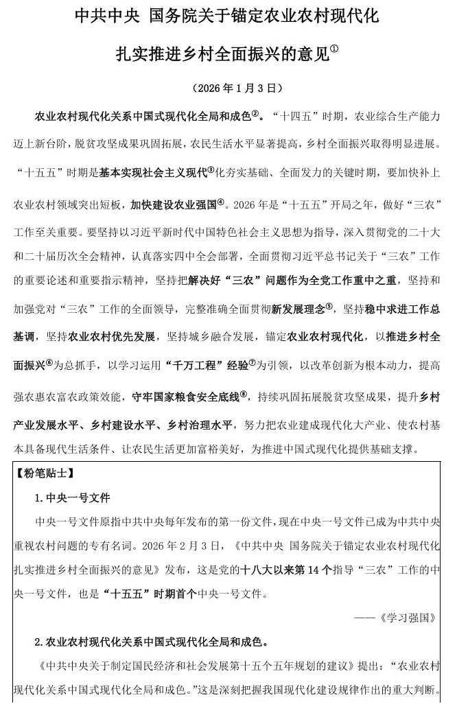2026中央一号文件解读