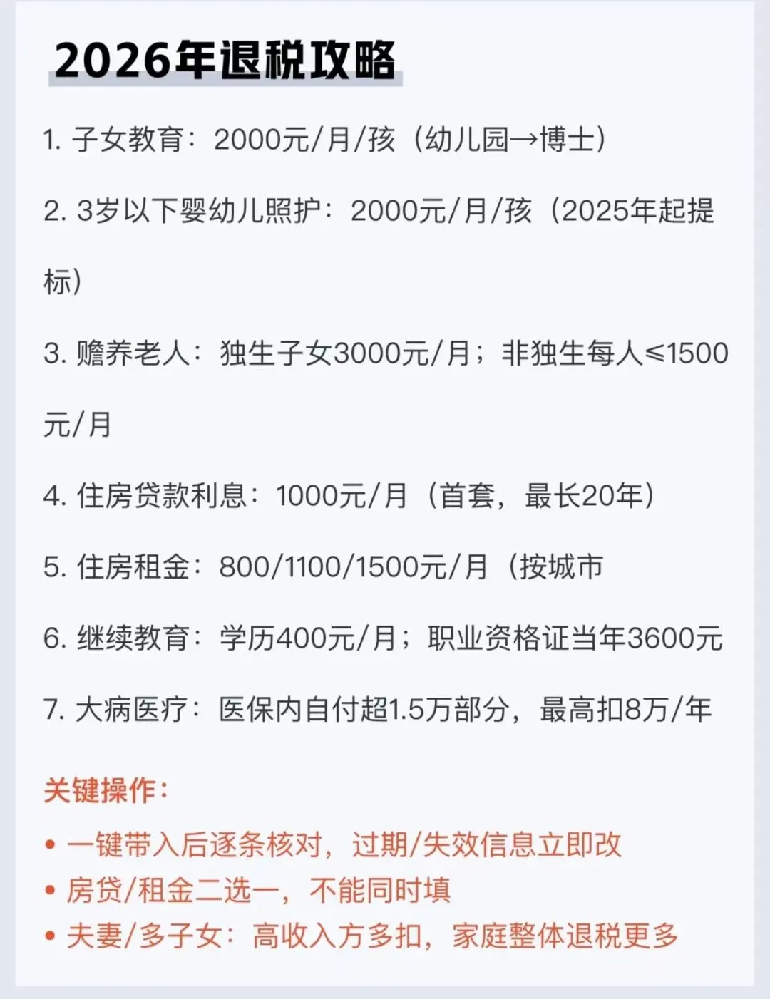 各位四新的邻居们,想跟大伙儿分享个刚发现的好事!所有交过个税的人,现在都可以在“个人所得税”APP上看看能不能退钱。只要下载APP,跟着下面的步骤操作,几分钟就能搞定,错过就可惜了!第一步:做好准备工作在开始退税之前,大家先检查两件事:1.把“个人所得税”APP升级到最新版本。2.登录进去,把个人信息填完整,尤其是实名认证和自己在哪里工作的信息。如果这些信息不全,是没办法办理的。第二步:进入办理流程打开“个人所得税”APP,在首页就能看到“综合所得年度汇算”的入口,点击进去。第三步:选择填报方式这时候系统会让你选填报方式:●选“使用已申报数据填写”: 如果你一直在一家单位上班,选这个最省事,系统会自动填好各项数据,你核对一下就行。●选“自行填写”: 如果你去年换过工作、新入职或者是自由职业者,就选这一项,自己逐项填写收入情况。核对时,看看收入、免税收入、税前扣除这些项目准不准确。如果有漏掉的,可以点进去修改。第四步:核对“专项附加扣除”(这步最重要!)这是最能帮大家省钱的项目。如果你有孩子上学、继续教育、赡养老人、住房贷款利息或者住房租金(房贷和房租二选一),都可以在税前扣除,少交不少税。●去年忘了填怎么办? 现在还有最后一次补报的机会,千万别错过。●大病医疗: 如果本人或家人去年看病花钱多(医保报销后,个人负担超过15000元的部分),也能申请扣除。第五步:看结果,领退税项目都确认好后,点击下一步,你就能看到结果了:●如果显示“应退税额”,那恭喜你,直接勾选“申请退税”,填好你在国内开户的银行卡号,这笔钱过阵子就直接打进你卡里了。●如果显示“应补税额”但不到400元,系统会显示“享受免申报”,你点个确定就行,不用补钱。如果超过400元,则需要按提示补齐。特别提醒:如果去年你一年的总收入还不到6万元,但中间被扣过个税,税务局会给你推送一个“简易申报”。你只需要确认一下预缴的税额,填上银行卡号,退税速度非常快。咱们四新的邻居们,还没办的赶紧去APP里看看,祝大家都能领到这笔退回来的钱!如果领到了,记得在留言区说一声!