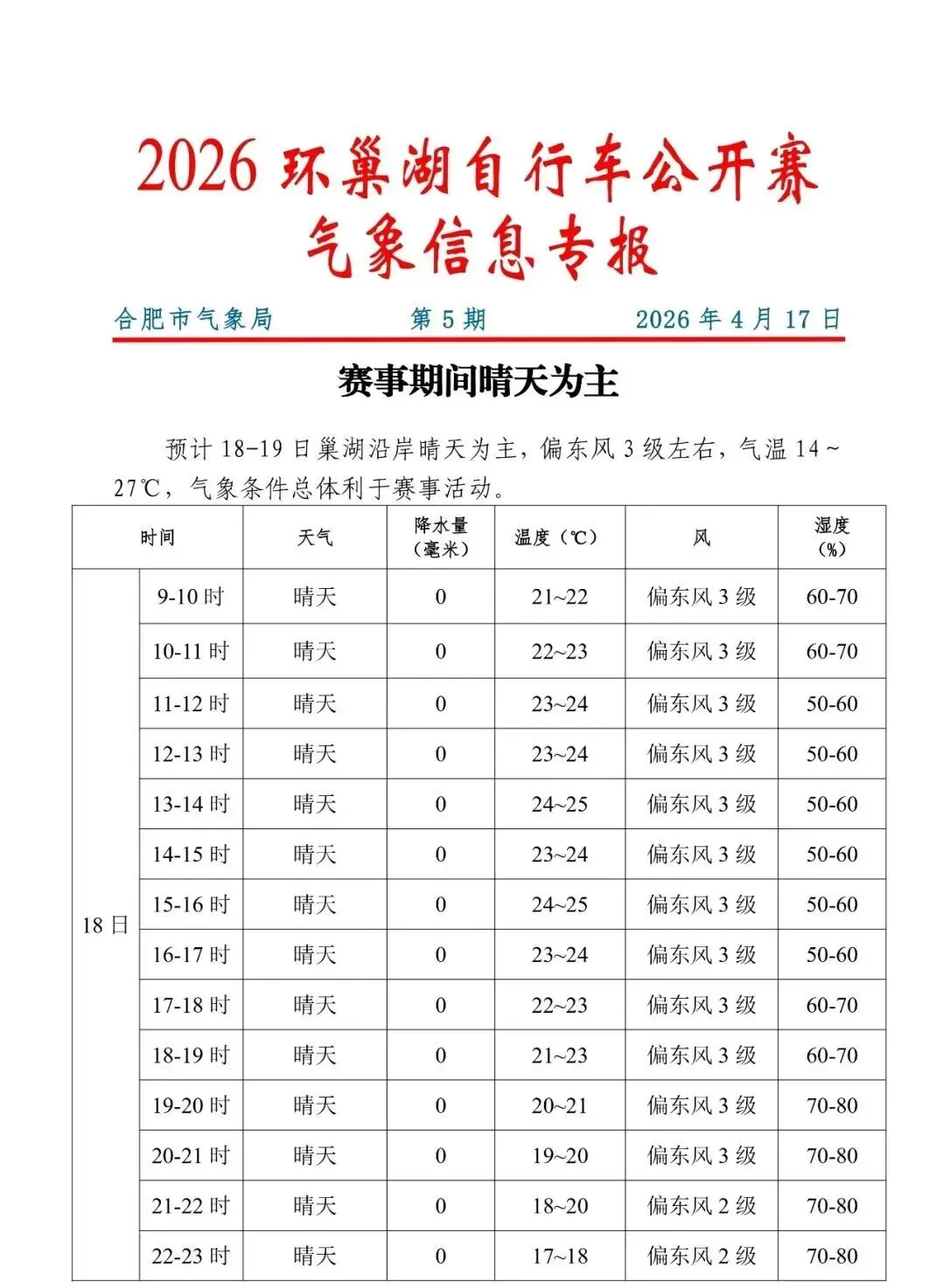 图为最新气象信息专报,请选手们注意!