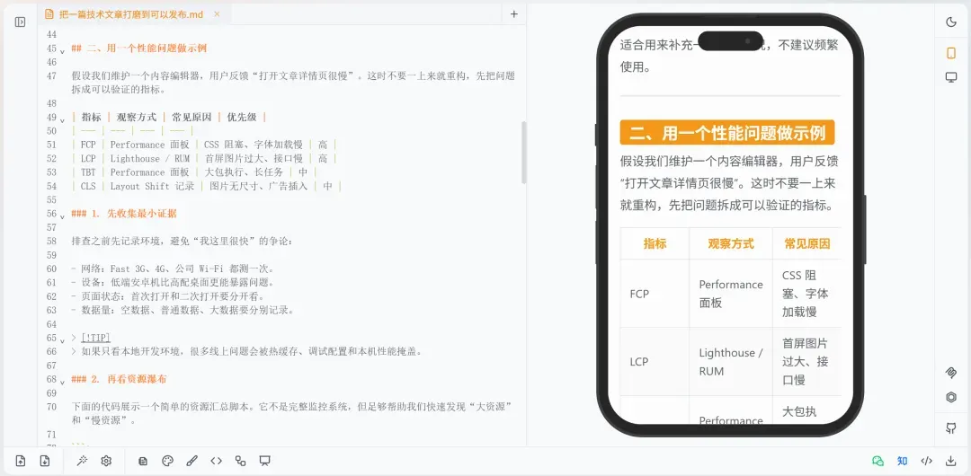 如果只能在 Markdown 源码里来回调整,这个过程会很“绕”。 而可视化编辑让最后的打磨更直观。